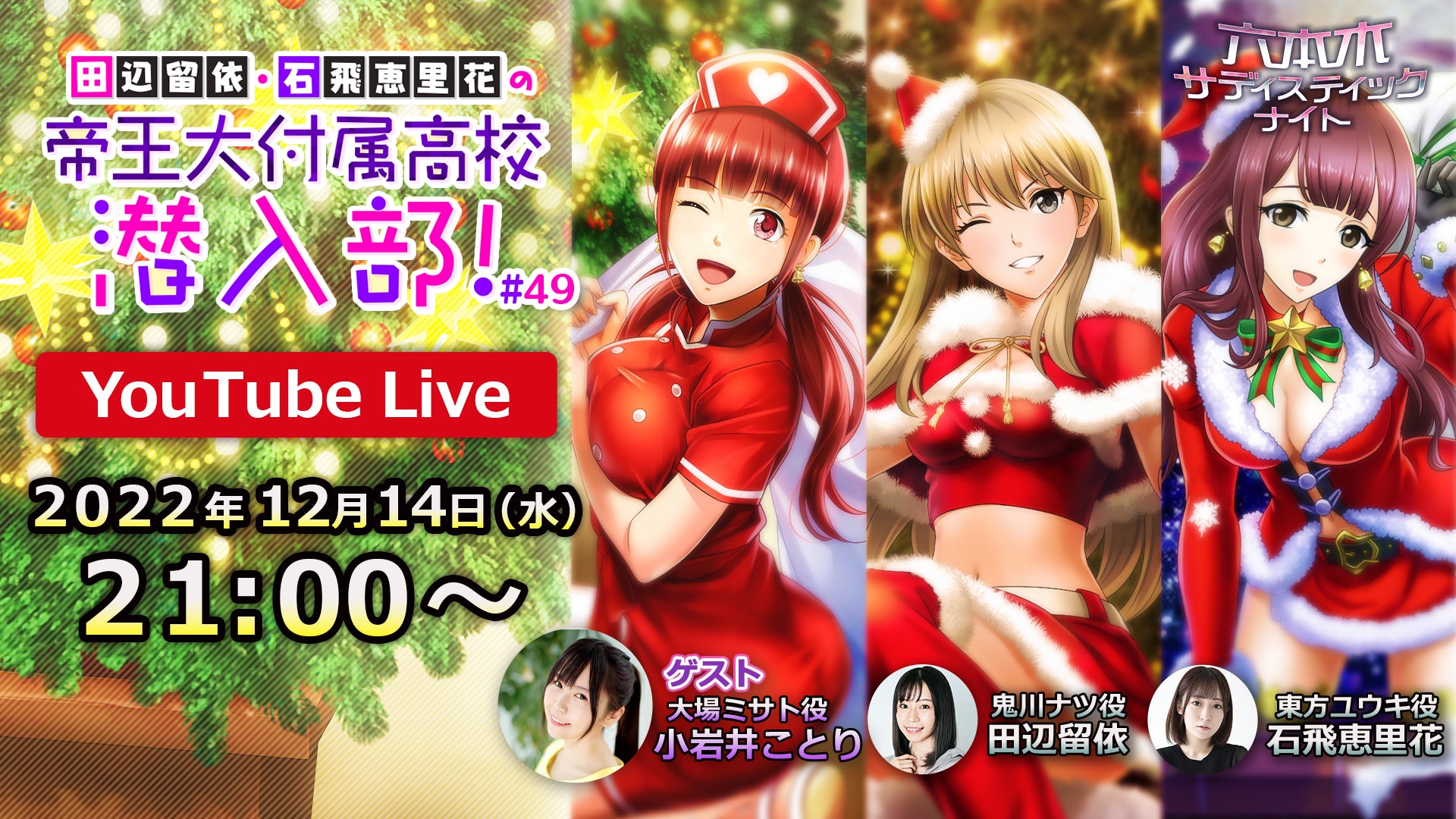 「六本木サディスティックナイト」公式YouTube番組 田辺留依・石飛恵里花の帝王大付属高校潜入部!#49 12月14日(水)より生配信決定 小岩井ことりさんをゲストに番組1周年スペシャルをお届け!