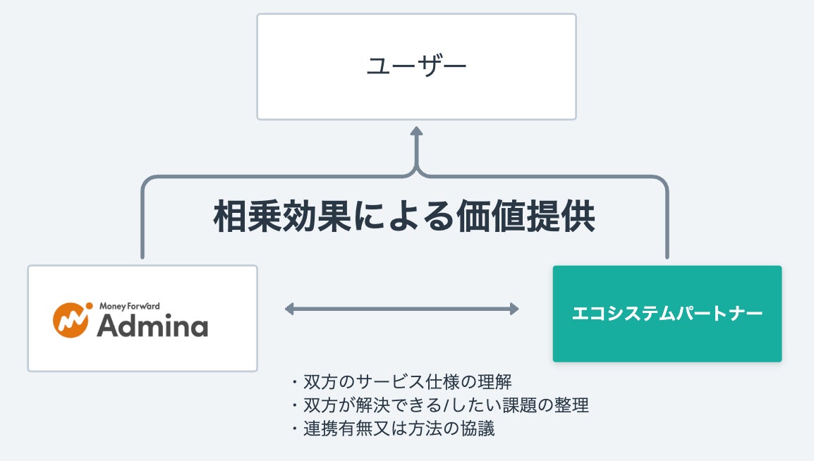 当社は、『マネーフォワード Admina』と、情報システム部門向けの各社サービスを組み合わせることでシナジーを生み出し、より広くユーザーの課題を解決することを目指しています。「エコシステムパートナー」は、情報システム部門向けの自社サービスを提供するすべての企業を対象に募集しています。詳しくは以下URLよりお問い合わせください。
