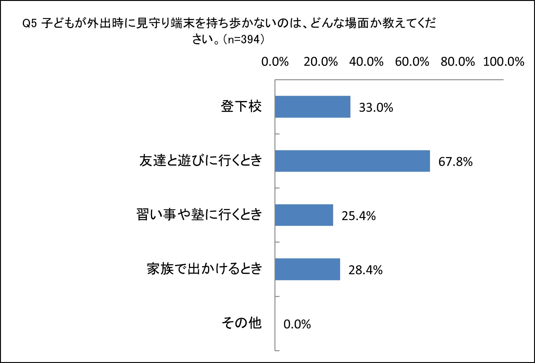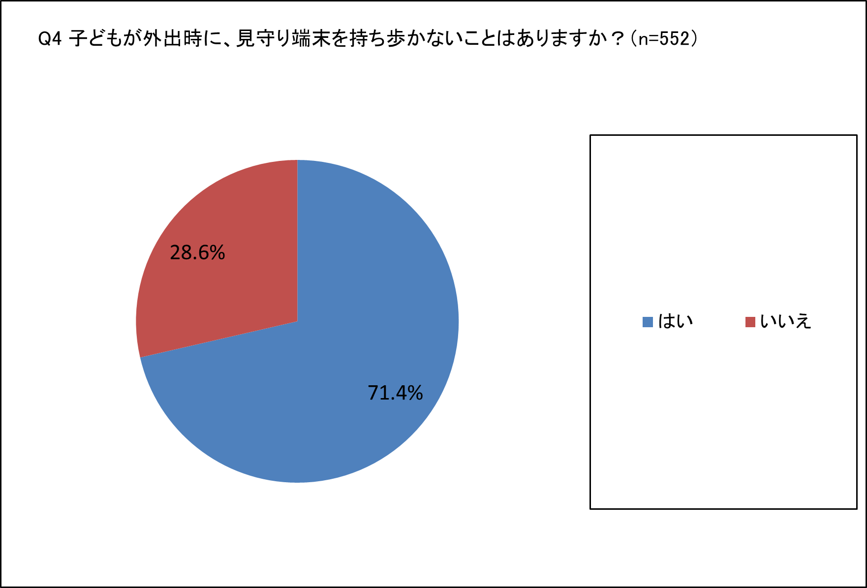 子どもが外出時に見守り端末を持ち歩かないことがあるかを聞くと、「はい」(71.4%)と回答。それはどんな場面かを聞くと、「友達と遊びに行くとき」(67.8%)、次いで「登下校」(33.0%)と、一人で外出する際に持ち歩かないことが多い傾向が明らかになった。