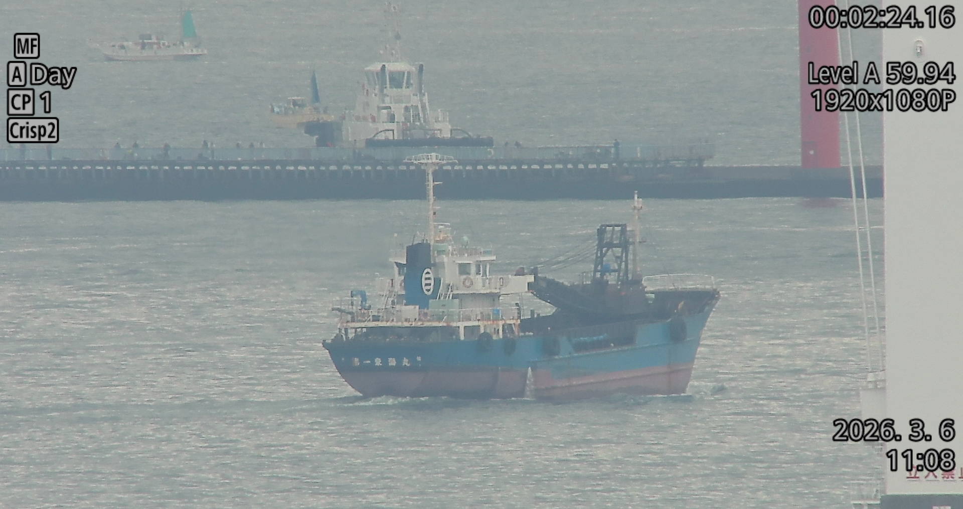 夜間監視や遠方監視では、暗所特有のノイズや大気の影響により、映像の鮮明度が低下することがあります。”MS-510”は、用途に応じた画質設定を保存できるカスタムピクチャー機能を搭載しています。監視用途のプリセット「CrispImg2(クリスプイメージ2)」では視認性を確保するため、シャープネス・ガンマカーブ・ノイズリダクションを最適化し、昼間は高精細で高コントラスト、夜間はノイズを抑えた映像を撮影できます。また、広いダイナミックレンジで明部階調を保持できるガンマ(BT.709 Standard/Canon 709)を使ったプリセットも用意しています。さらに、かすみ・もやの影響を抑えて適正なコントラストに自動調整する「かすみ補正」、逆光や明暗差の大きい場面で黒つぶれと白飛びを抑制する「スマートシェード補正」を搭載しています。霧や逆光などの厳しい環境でも、対象の輪郭や文字情報を視認性高く捉えることができます。