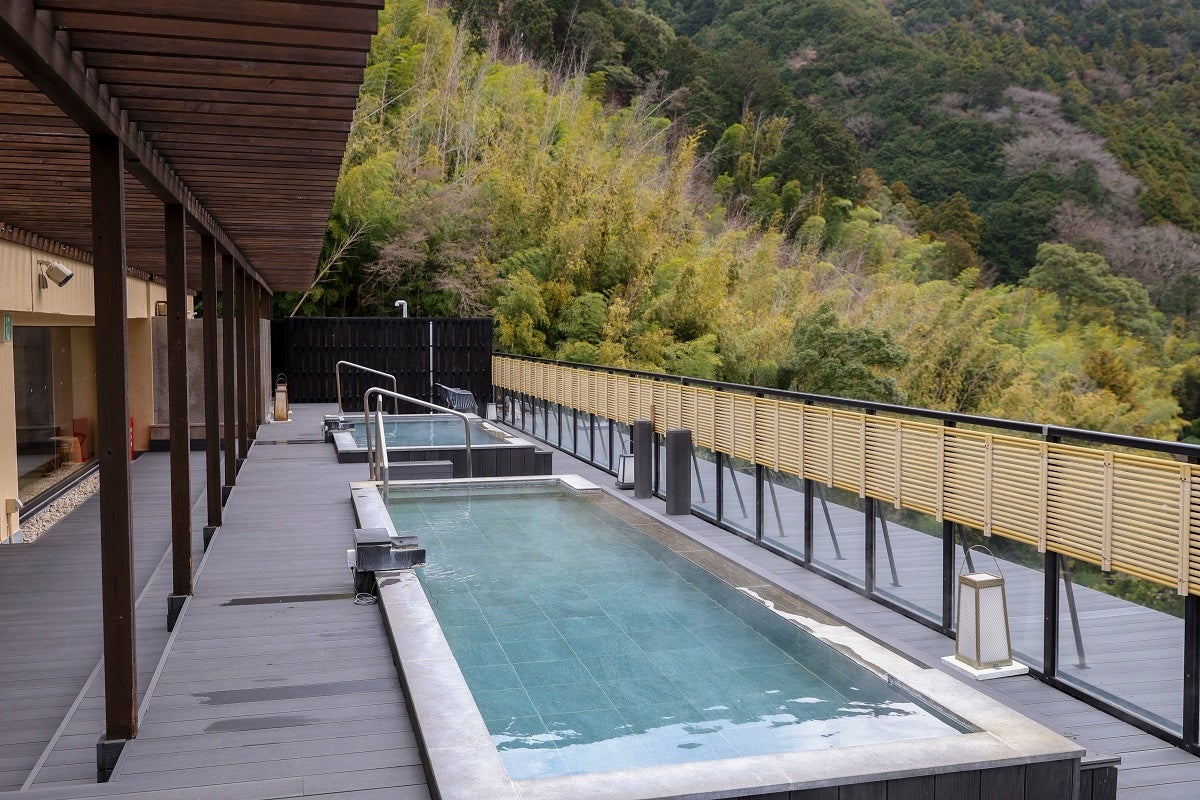 展望露天風呂「大空」は高台から雄大な自然を360度満喫できる山翠楼自慢の場所。