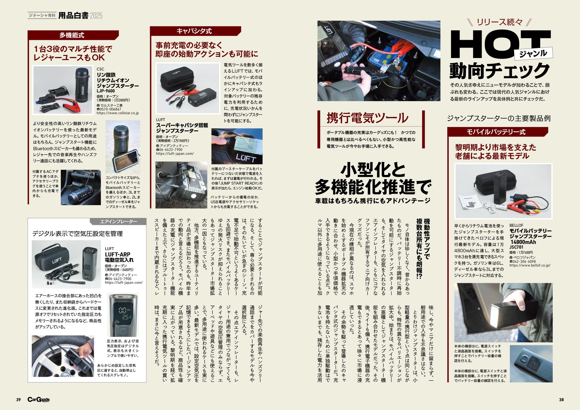 株式会社三栄(本社所在地:東京都新宿区、代表取締役社長:鈴木賢志)は、2025年1月17日より『Car Goods Magazine(カーグッズマガジン) 2025年3月号』を発売いたします。今号の特集は『ジドーシャ専科 用品白書2025』。