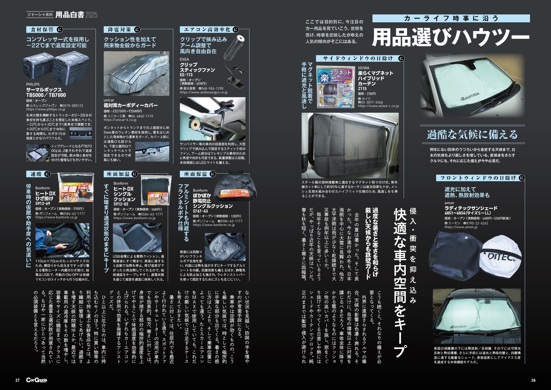 『クルマ生活応援マガジン』の路線を徹底的に強化、カー用品からアウトドアグッズまでワイドレンジに、とりわけ、新製品に関わる情報を、読者の立場に立って装着ノウハウ、使用テスト、購入アドバイス等をご紹介。