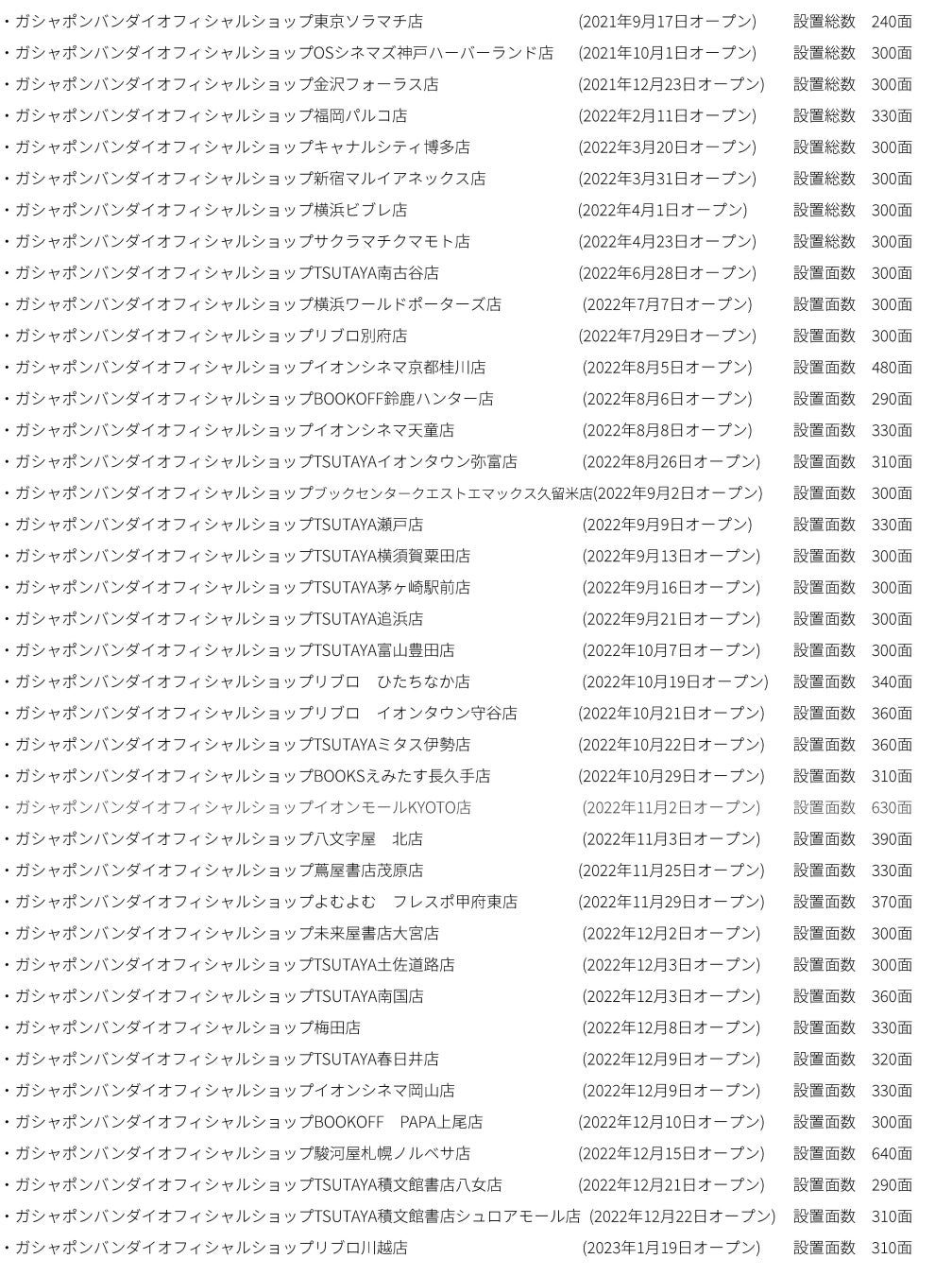 【日本国内展開中の『ガシャポンバンダイオフィシャルショップ』店舗リスト:計123店舗】