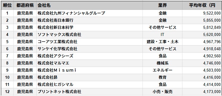 【2025年版】鹿児島県の上場企業・平均年収ランキングを公開!/SalesNow DBレポート