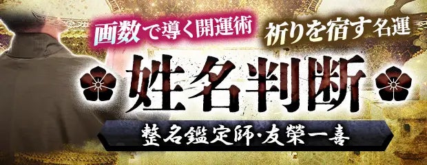 姓名判断|祈りと姓名學の極秘法「整名判断」の創始者・友榮一喜。人生好転/恋成就/開運祈願の姓名技術を基に、望む未来への答えを導く極秘術が遂に明らかに。名前に宿るエネルギーからあなたの本質も運命も完全的中。祈りを宿す秘蔵の鑑定があなたを確実に幸運へ導きます。