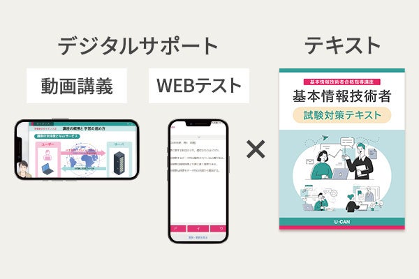 ユーキャンの『基本情報技術者合格指導講座』は、動画講義によるインプットや、Webテストを通したアウトプットなど、スマホ1つで手軽に学習を進められるのが魅力。