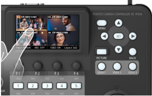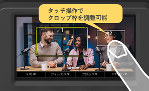 IPで入力された映像を表示できる3.5インチのタッチパネルを搭載し、1台のコントローラーに最大9台の映像を同時に表示することが可能です。また人物の顔などをタッチするだけでAF対象を指定できるほか、3つのクロップ枠を同時に表示し、映像を見ながらそれぞれのクロップ枠の位置やサイズを調整できます(※4)。