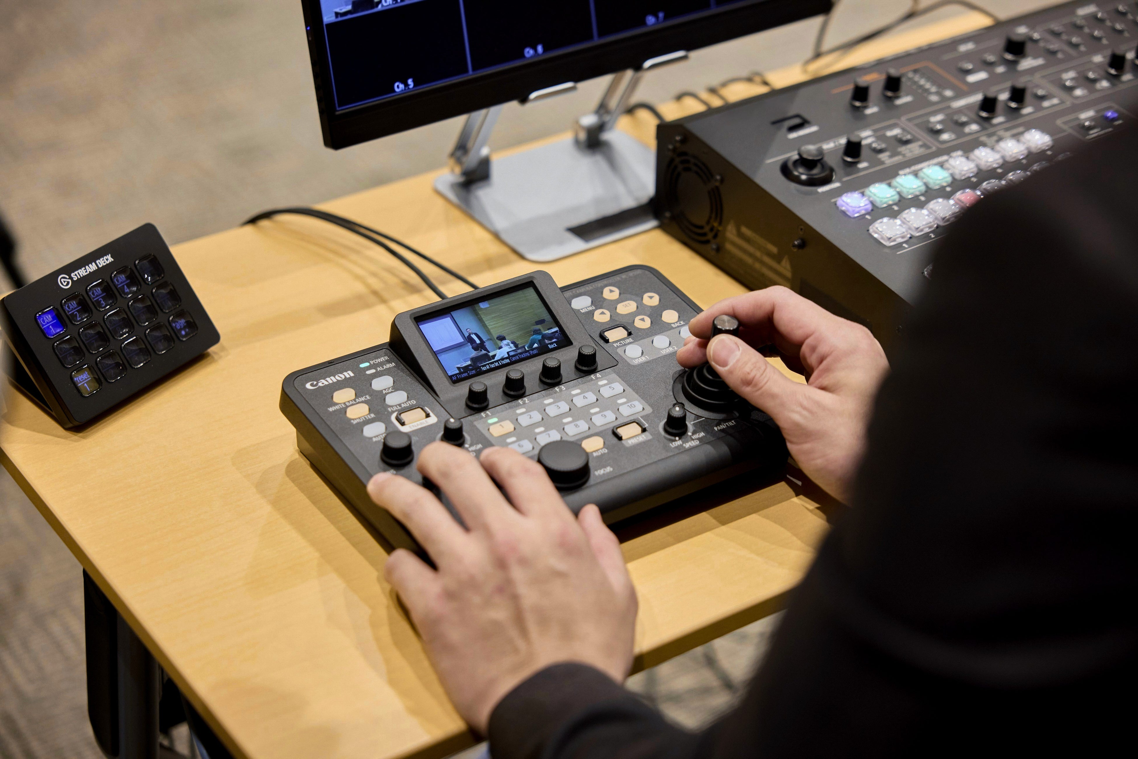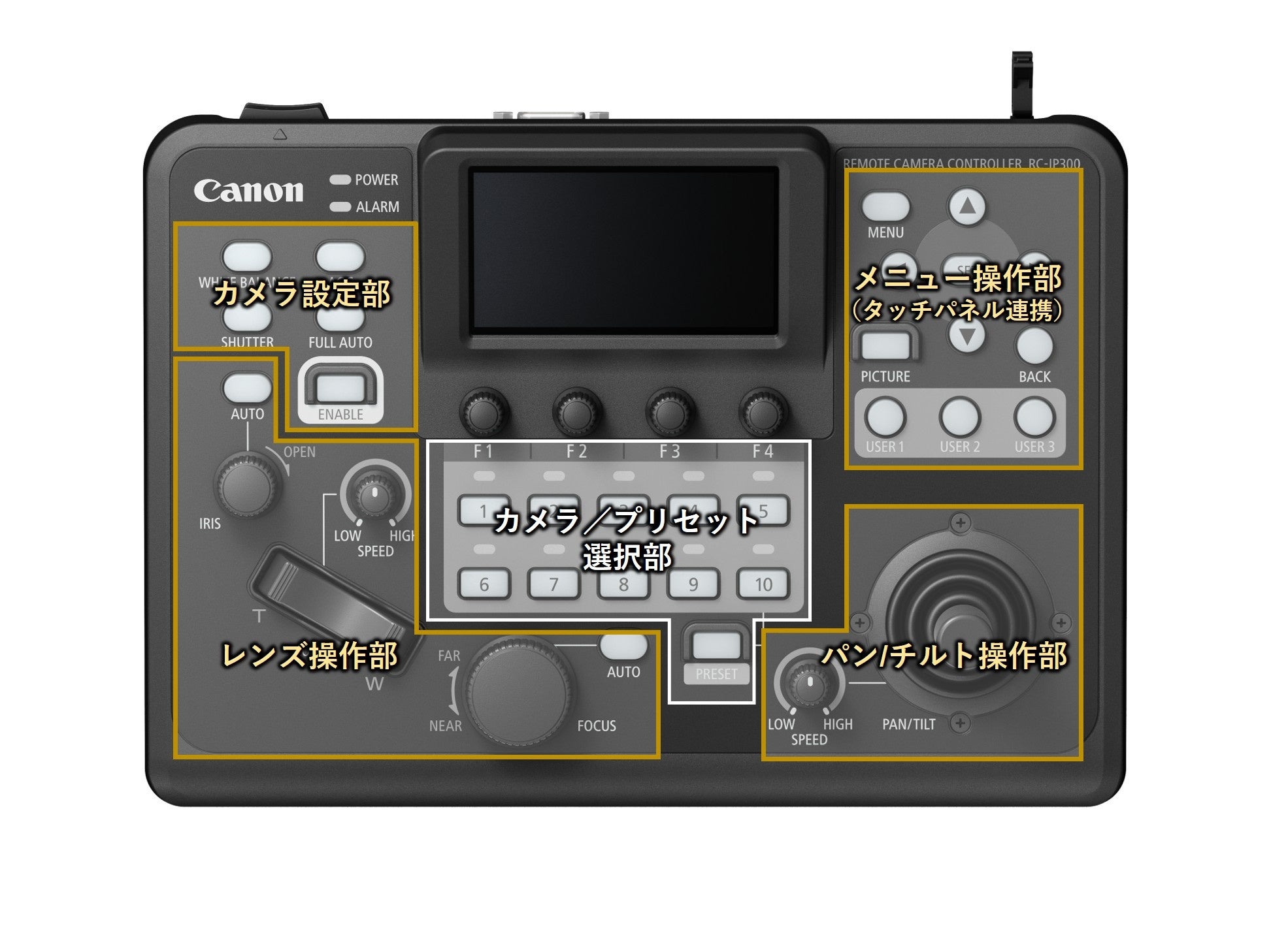 昨今、映像コンテンツの増加に伴い、制作作業の効率化や低コスト化、省人化に寄与するリモートプロダクションが拡大しています。キヤノンは、こうした市場に向けて、映像制作用リモートカメラコントローラーの新製品“RC-IP300”を発売します。“RC-IP300”は省スペースを実現する小型・軽量でありながら、3.5インチのタッチパネルや充実した操作部を搭載し、豊富な機能を直感的に実行することが可能です。効率的で高品質な映像制作をすることが求められる放送局をはじめ、企業の社内制作や大学のオンライン講義の撮影などさまざまな場面で、リモートプロダクションの利便性向上に貢献します。