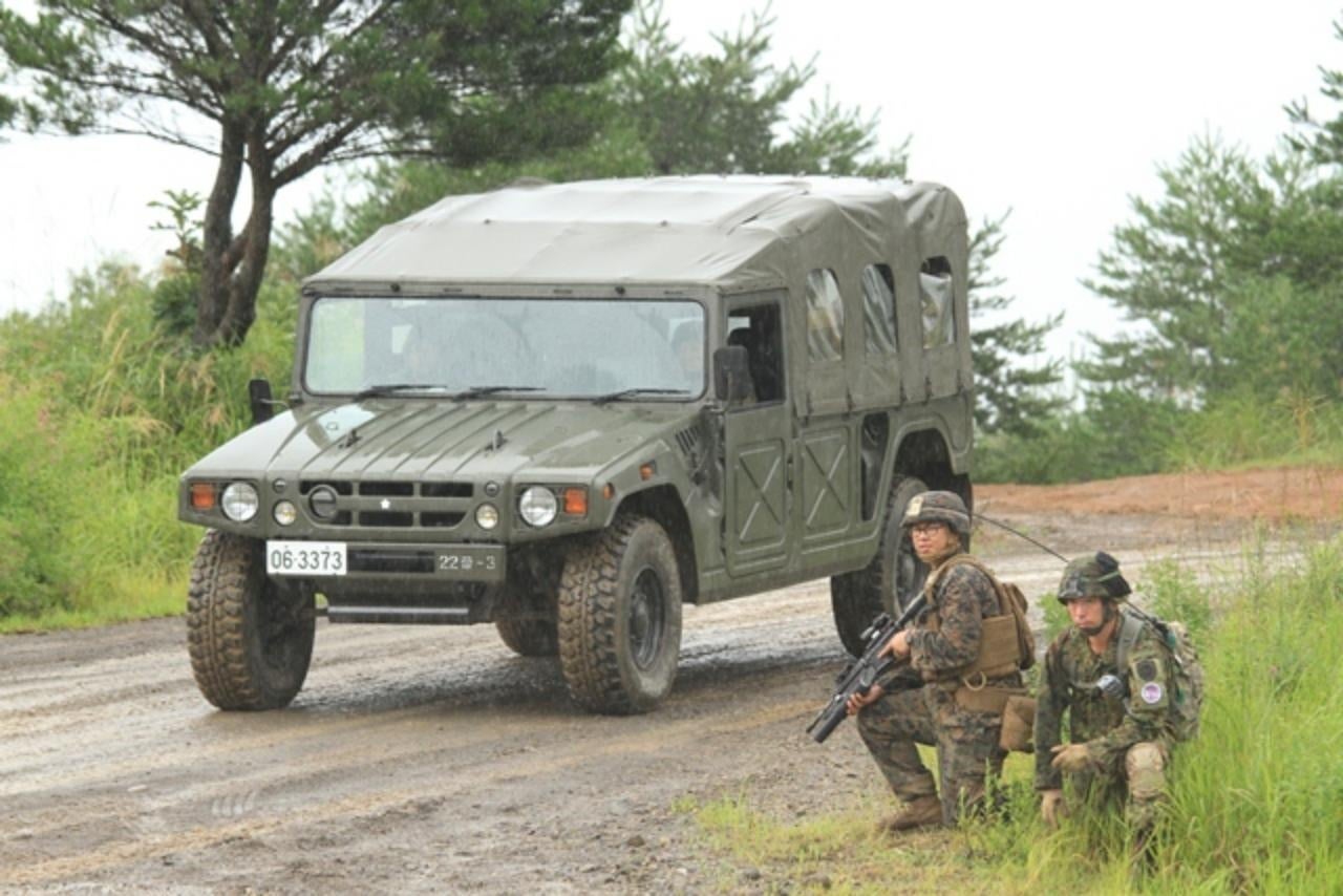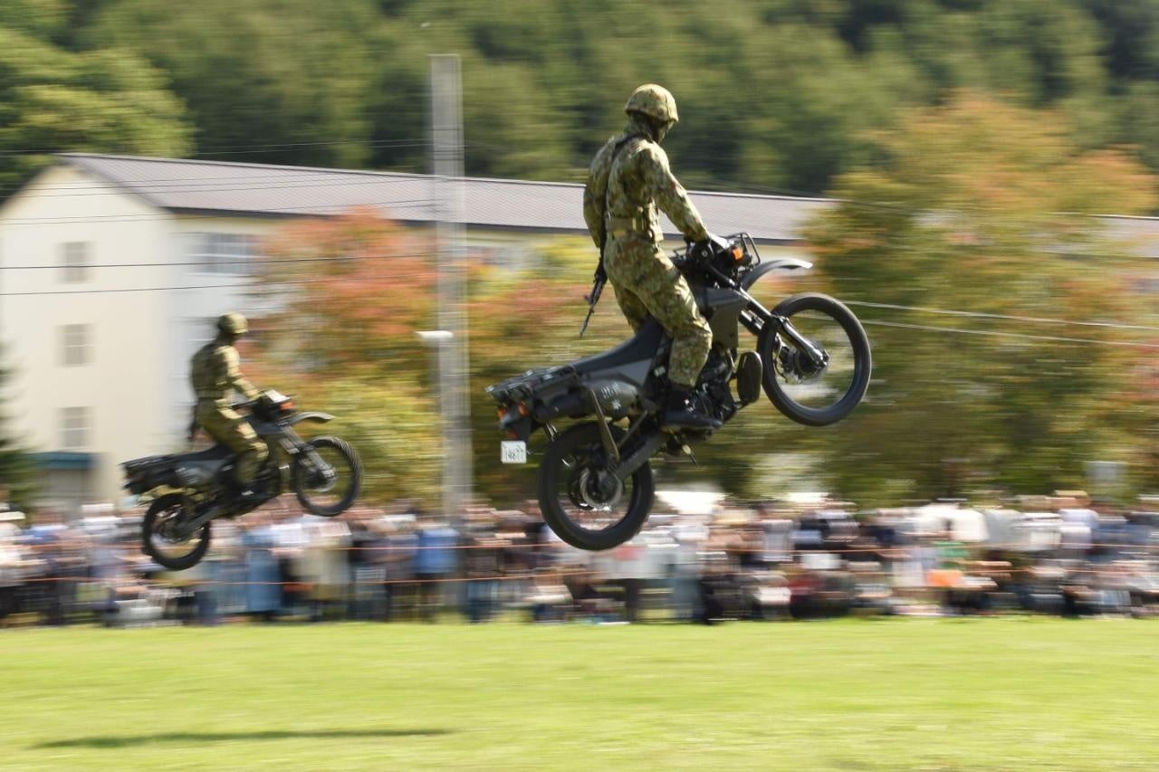 ・高機動車・偵察用オートバイの展示。実際に乗って写真撮影もできます!