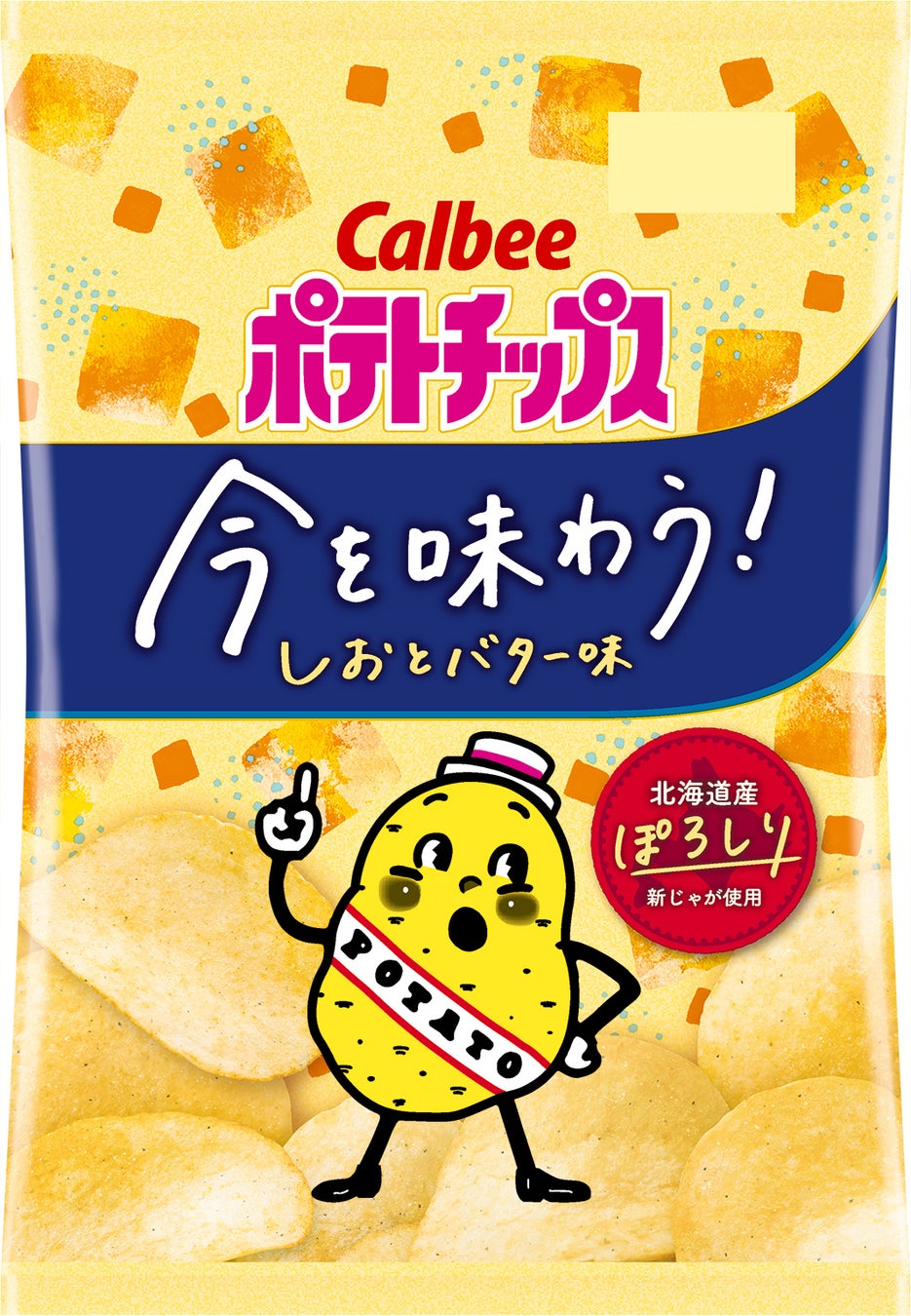●『ポテトチップス 今を味わう!しおとバター味』は、しおとバター※を組み合わせ、ジャガイモ本来のおいしさと、それを引き立てる芳醇なバターの香りが楽しめるように仕上げたポテトチップスです。