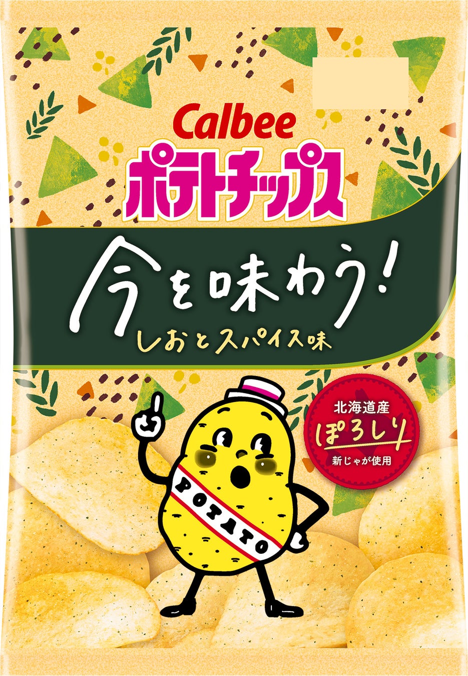 ●『ポテトチップス 今を味わう! しおとスパイス味』は、しおとスパイス、その他ハーブなどを組み合わせ、ジャガイモ本来のおいしさと、香り豊かな味わいが楽しめるポテトチップスです。