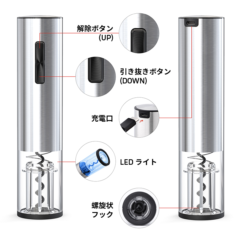 らくらく自動でコルク栓抜き!手間いらず・力入らずの電動ワインボトルオープナー