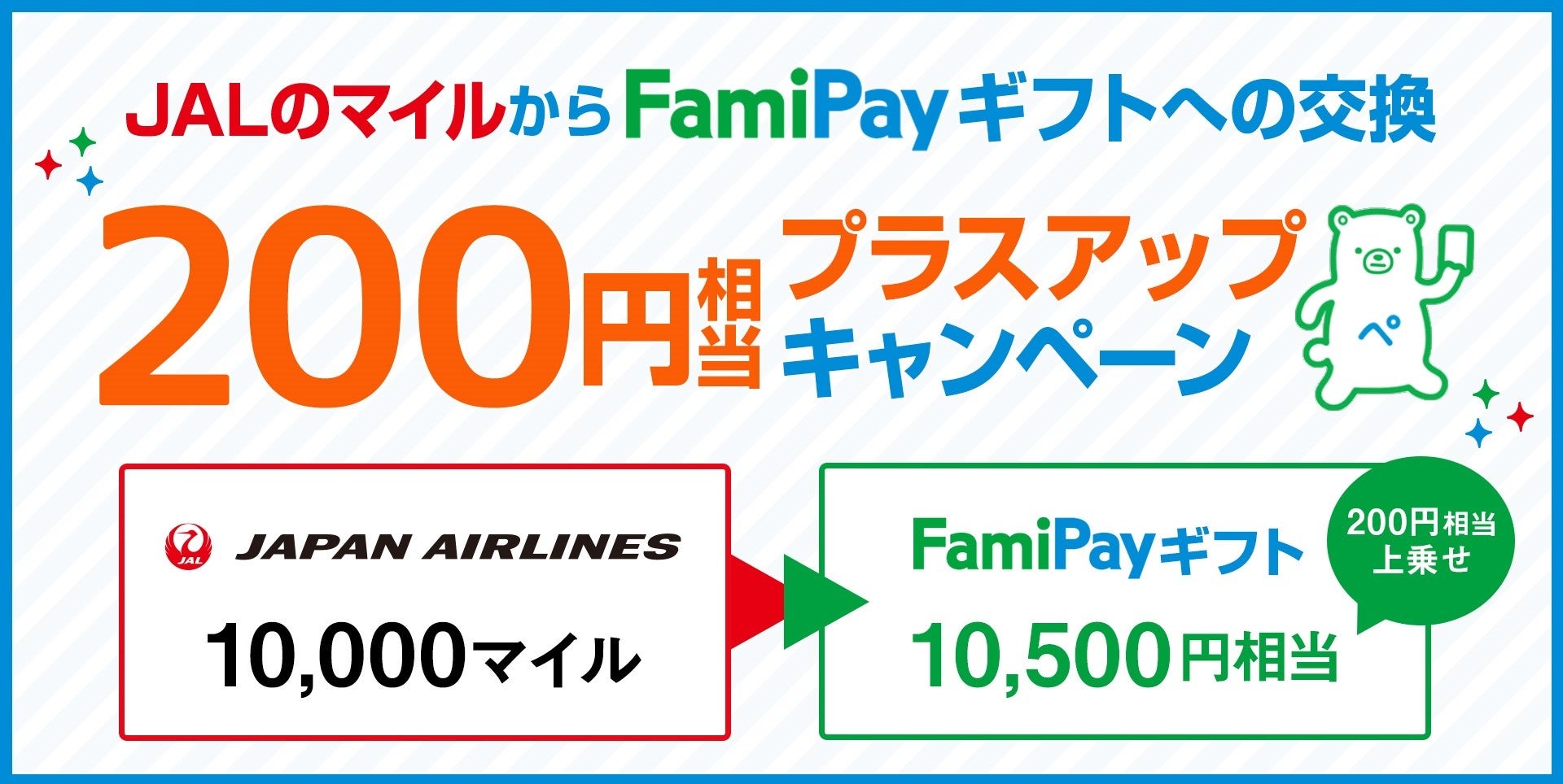 ファミマのアプリ「ファミペイ」「JALのマイルからFamiPayギフトへの交換プラスアップキャンペーン」を実施!~10,000マイルを10,500円相当のFamiPayギフトに交換!~