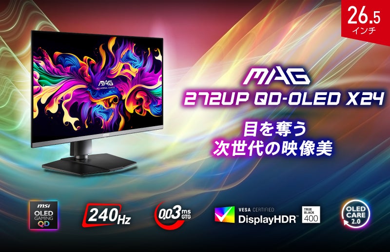 有機EL・量子ドットパネル採用で次世代の映像美を体験 4K UHD・240Hz・0.03ms(GTG)のハイスペックゲーミングモニター 「MAG 272UP QD-OLED X24」発売