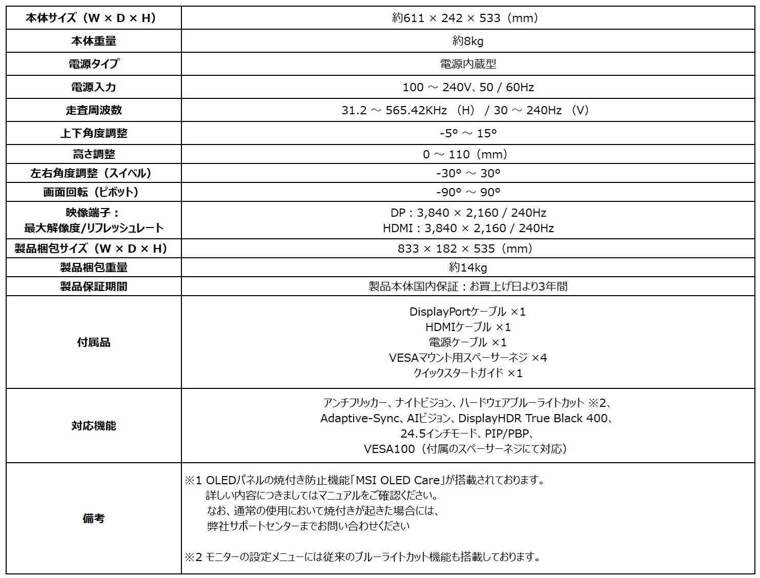 製品ページ: https://jp.msi.com/Monitor/MAG-272UP-QD-OLED-X24