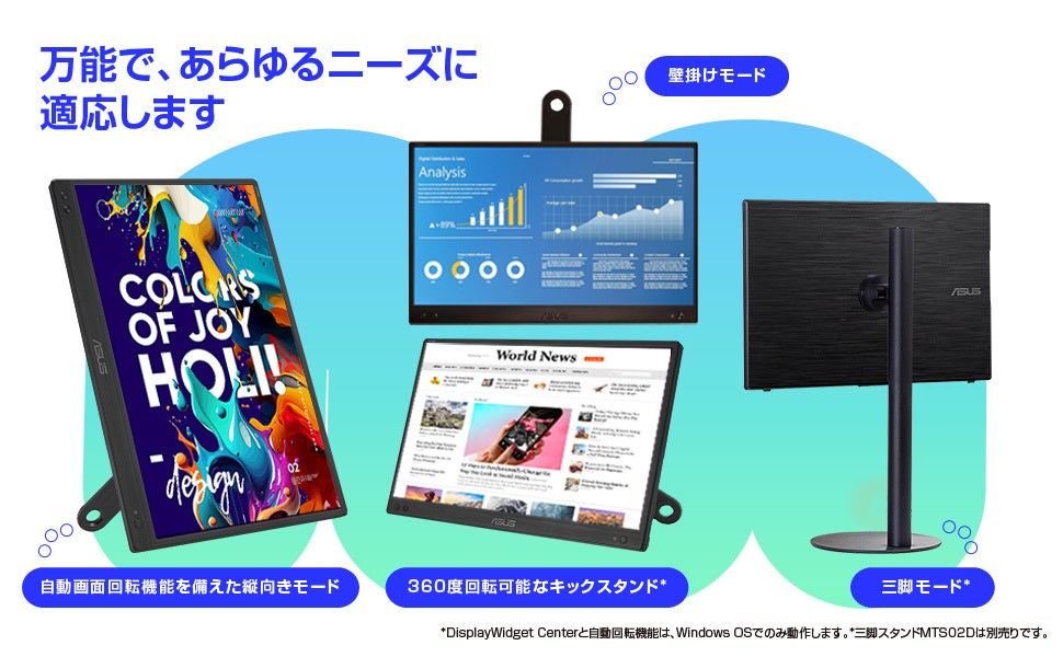 ASUS JAPAN株式会社は、15.6型、フルHD、USB Type-Cコネクター、取り外し可能なキックスタンド付き、ノングレアIPSディスプレイ採用のポータブルモニター「ZenScreen MB166CR」を法人・文教向けに発表しました。