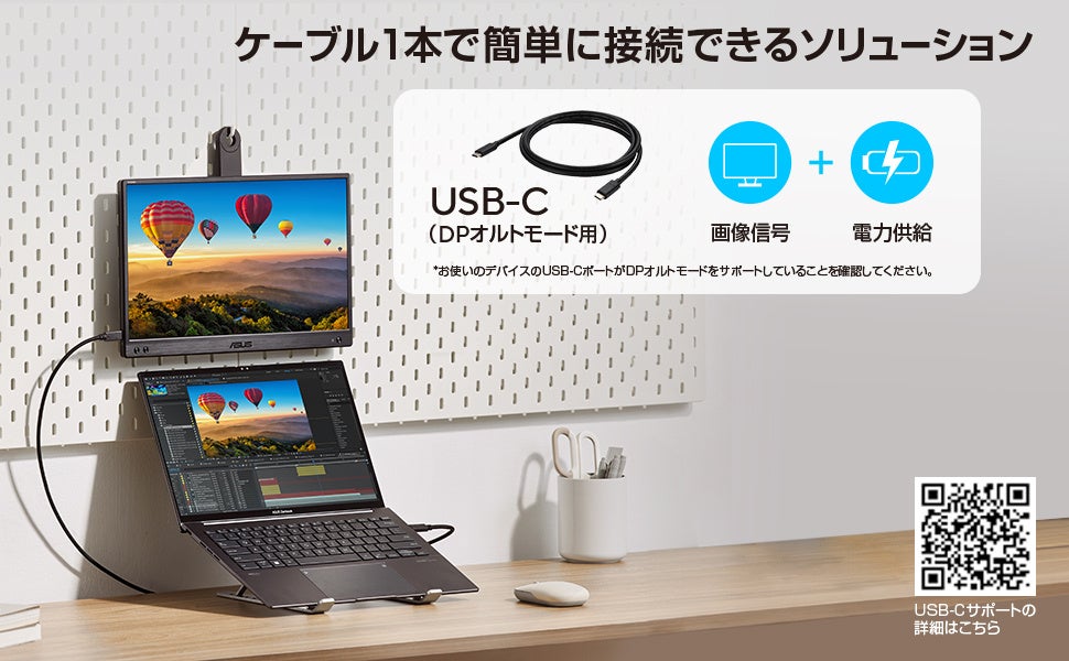 USB Type-Cコネクター(DP Altモード)1本で簡単に接続ができます。