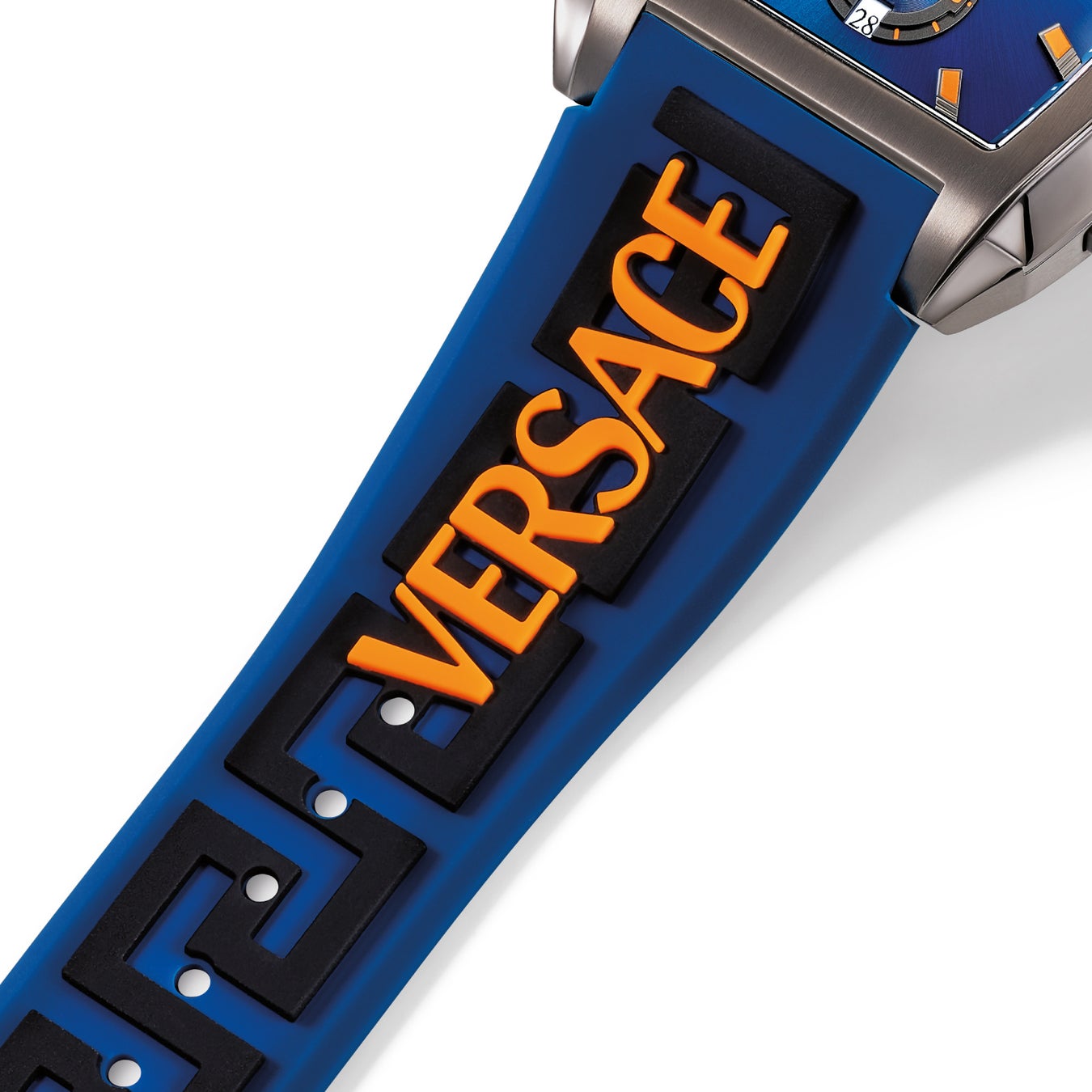 シリコン ストラップタイプには、VERSACEのロゴとグレカ模様をデザイン。