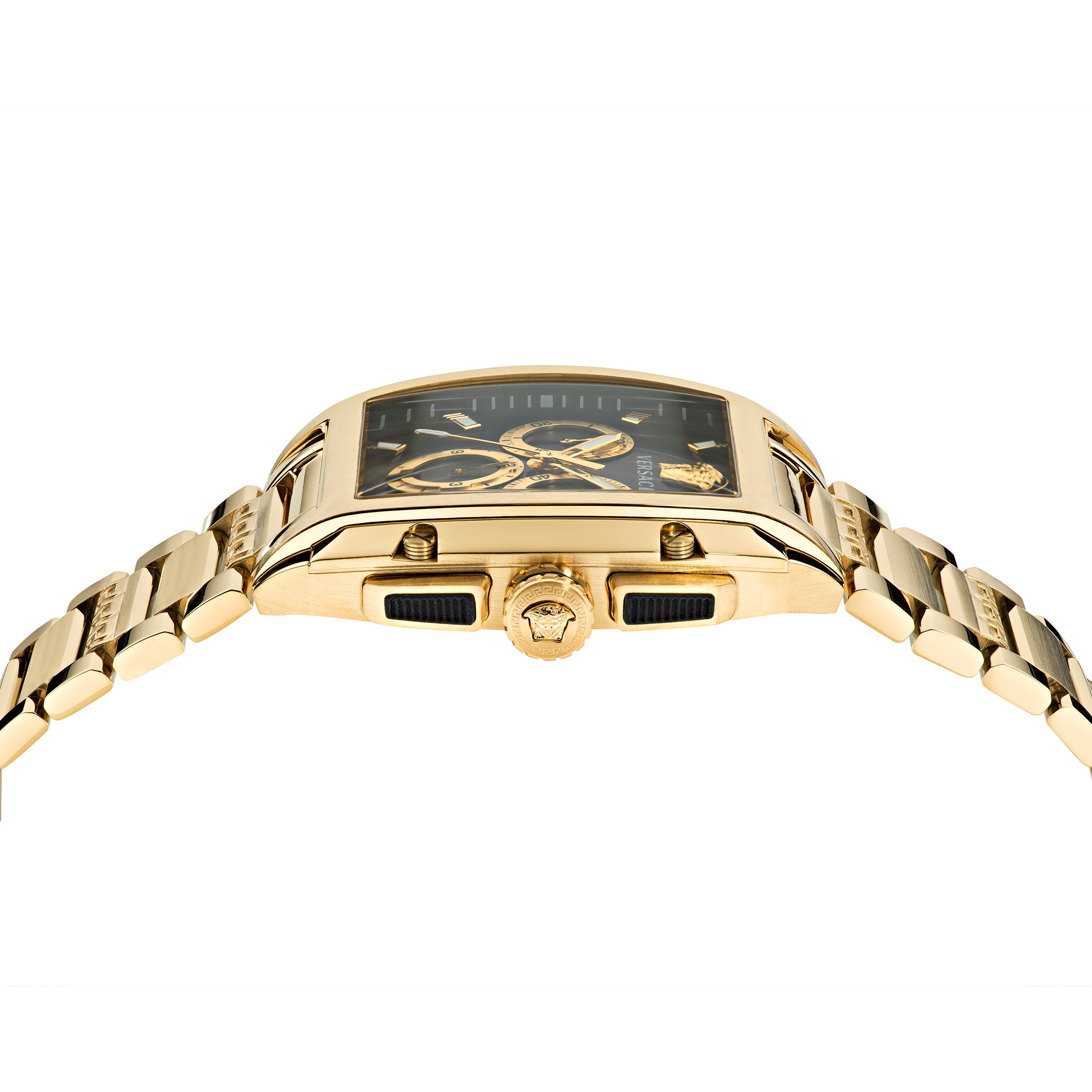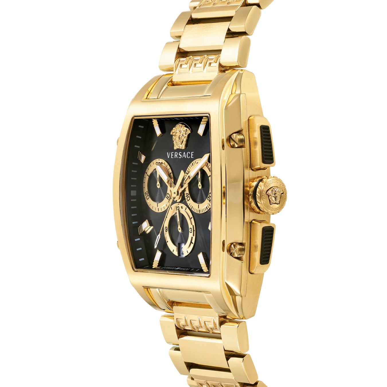 シリコンストラップタイプには、対照的な2色のカラーを使用したグレカモチーフとVERSACEロゴのエンボス加工を施し、アイコニックな存在感を発揮します。ブレスレットタイプは、グレカロゴが入った高級感のあるゴールドのステンレススチールを採用。VERSACEらしい煌びやかなデザインが腕元を華やかに演出します。