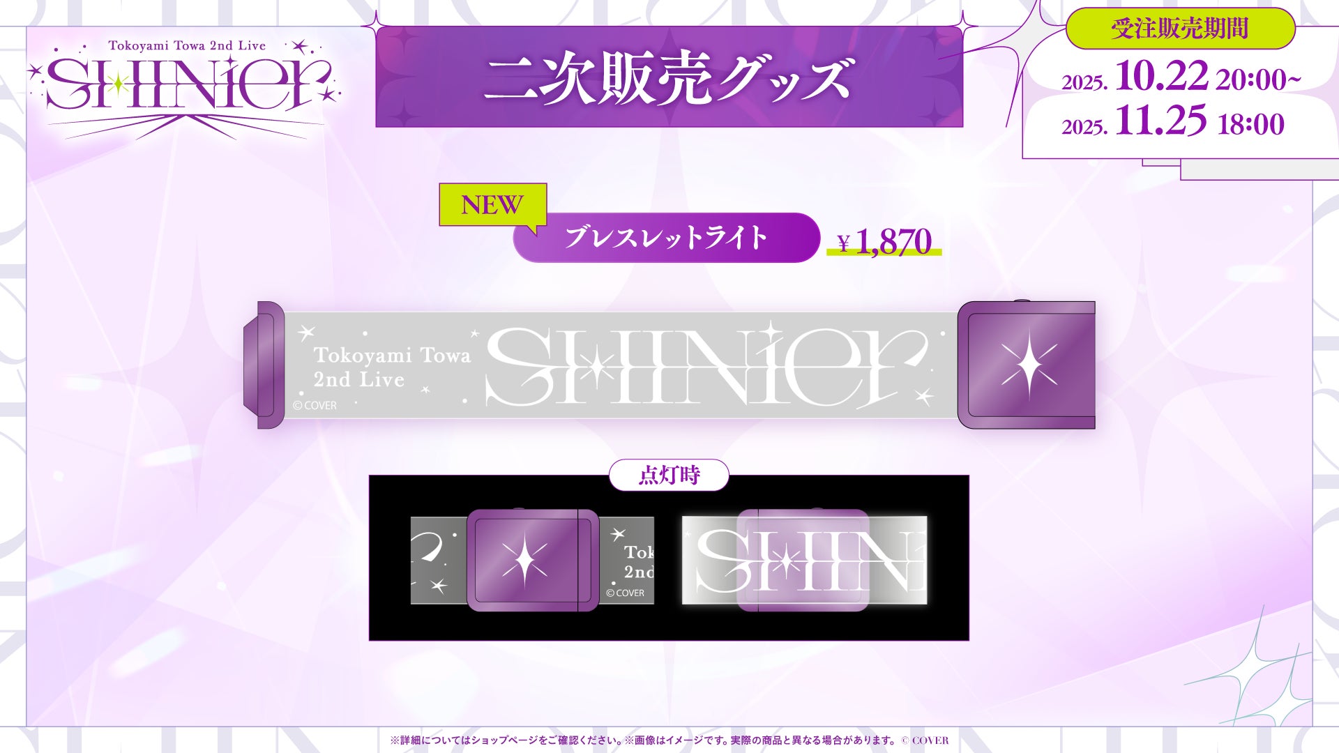 グッズ購入(海外):https://shop.hololivepro.com/en/products/tokoyamitowa_2ndlive_shinier_secondaryorder