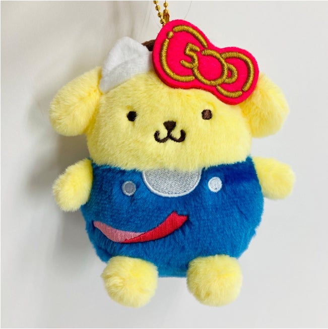 ふわふわな肌触りのポムポムプリンのマスコットチャームです♪「ハローキティと新幹線」をデザインしたフェルト生地のタグ付です!