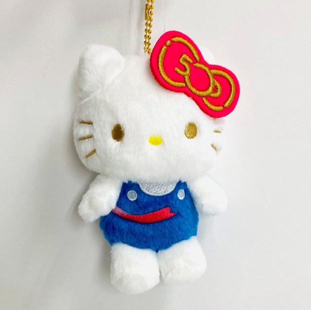 50周年verのリボンを付けたハローキティです。ふわふわな肌触りのぬいぐるみです♪