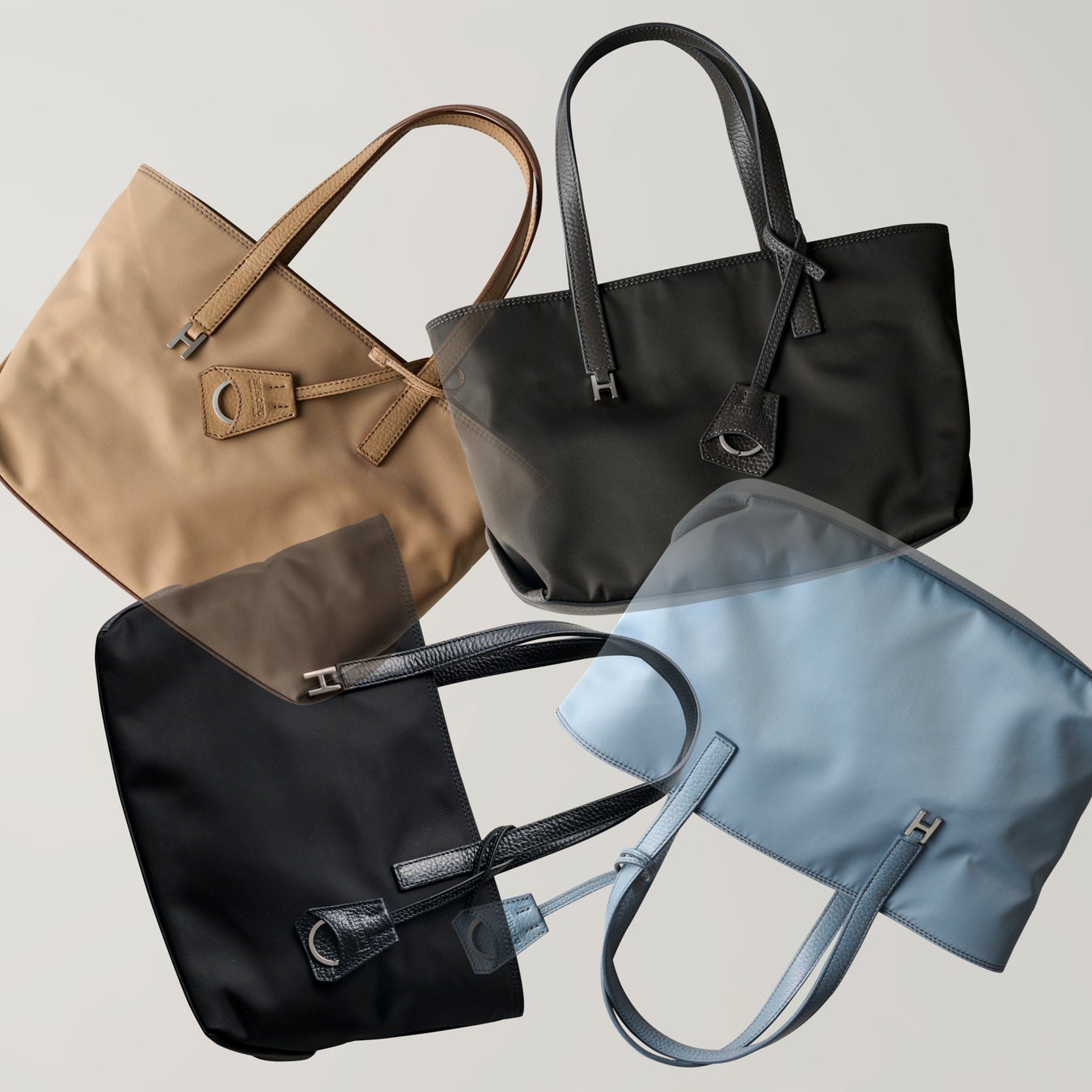 また、ナイロンならではの軽さも魅力的。すべてのアイテムにはオリジナルメタルで「H」のロゴが施され、実用的かつアクセントにもなるキーチャームが付属しています。