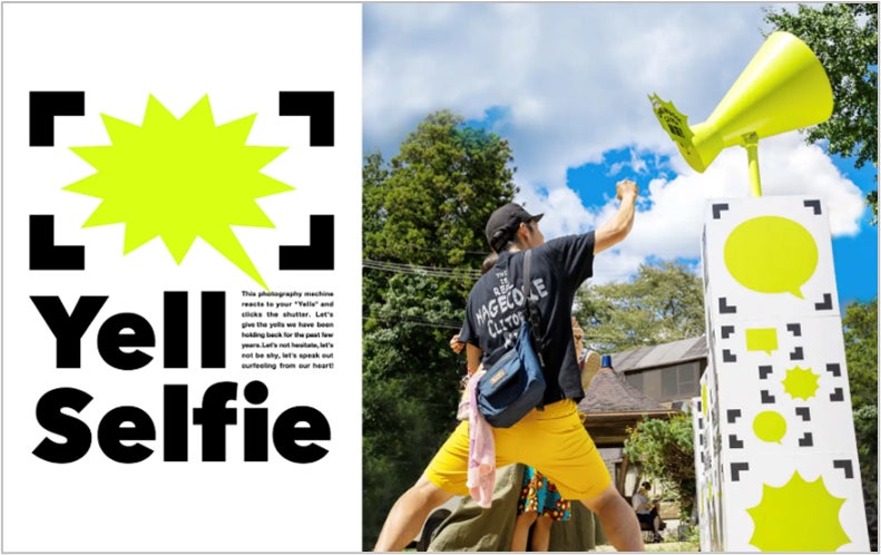 ●Yell Selfie/エールセルフィー:「声を出す」という行動を可視化し、その様子を思い出に残す新体験装置です。キーワードをメガホンに向かって叫ぶとその声援がカメラのシャッターの合図になり、最大音量の瞬間を切り取った写真がプリントされお持ち帰りいただけます。またエールを叫ぶ様子は映像として記録され、会場内のサイネージに掲示予定です。
