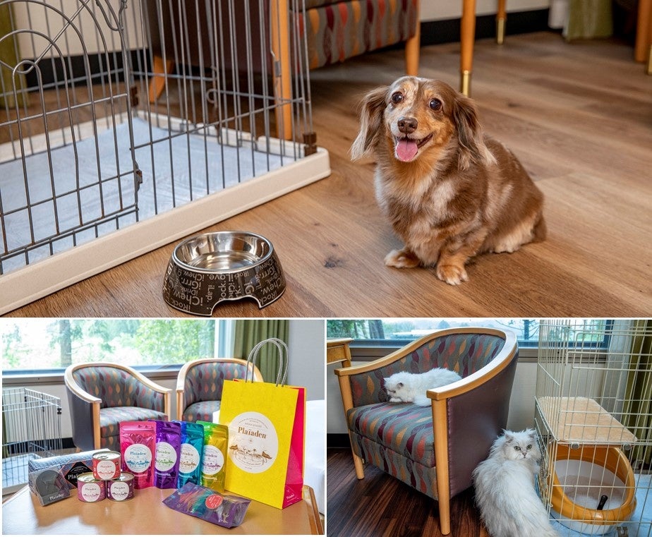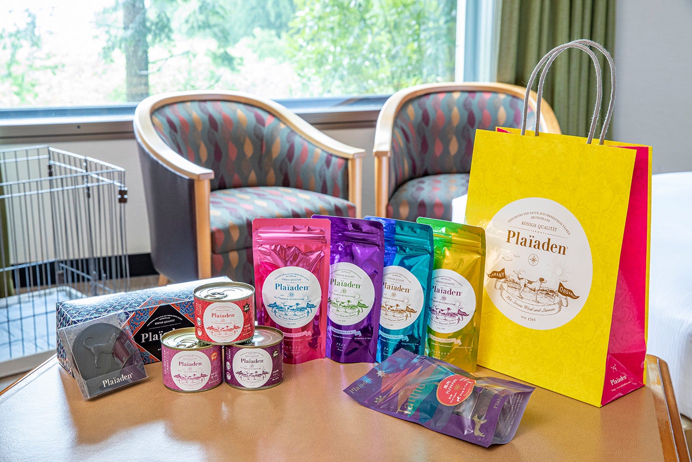 今回新登場した「ペットと一緒にお泊りプラン~プレイアーデン®特別ギフトセット~」は、ペットが快適に宿泊できるように、従来のプランよりも客室内のペット用備品を拡充。ペットとのご旅行を身軽に楽しんでいただけます。さらに、世界有数のペット先進国と称されるドイツの歴史あるペットフードメーカーと日本の共同開発によって生まれた「プレイアーデン」の特別ギフトセット3種(わんちゃんプラン/ねこちゃんプラン)から、ペットのお好みに合わせてお選びいただくことができます。