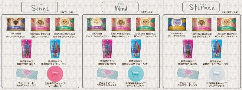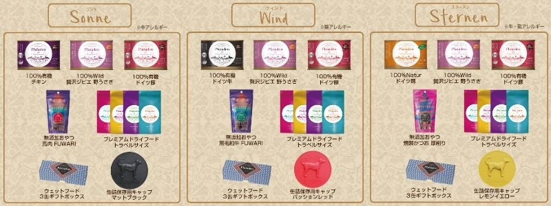 プレイアーデン® 特別ギフトセットは、わんちゃんプラン、ねこちゃんプランともに3種類からお選びいただけます。ウェットフードには、Bio認定を取得した100%有機の精肉や天然の鱒・ジビエ肉を使用したものをご用意、さらにグルテン(穀物のタンパク質)を使用せず、食物アレルギーを起こしにくい食材で作られたフードもご用意しております。一緒にギフトバッグも付いておりそのままお持ち帰りいただくことも可能です。