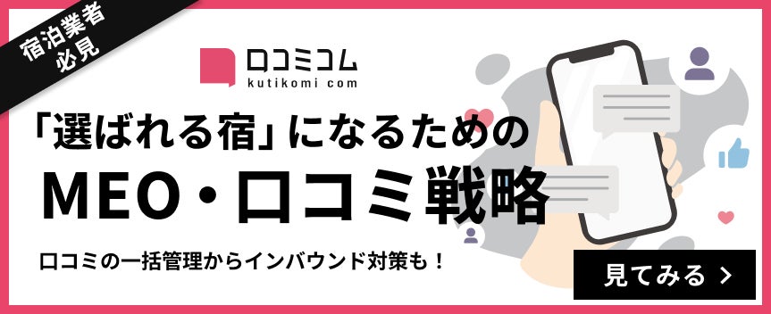 ▼「選ばれる宿」になるためのMEO・口コミ戦略なら口コミコム