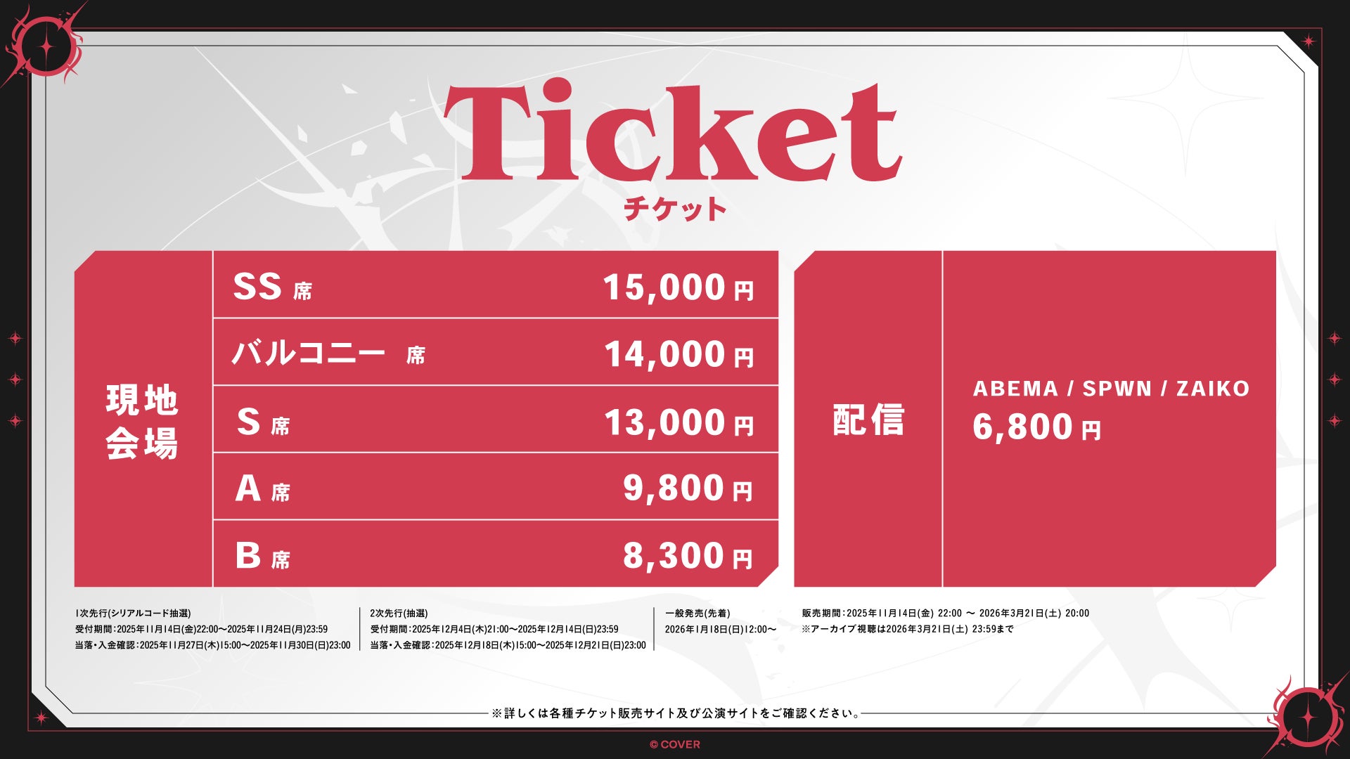 ▼配信チケット(ABEMA、SPWN、ZAIKO):¥6,800(税込)