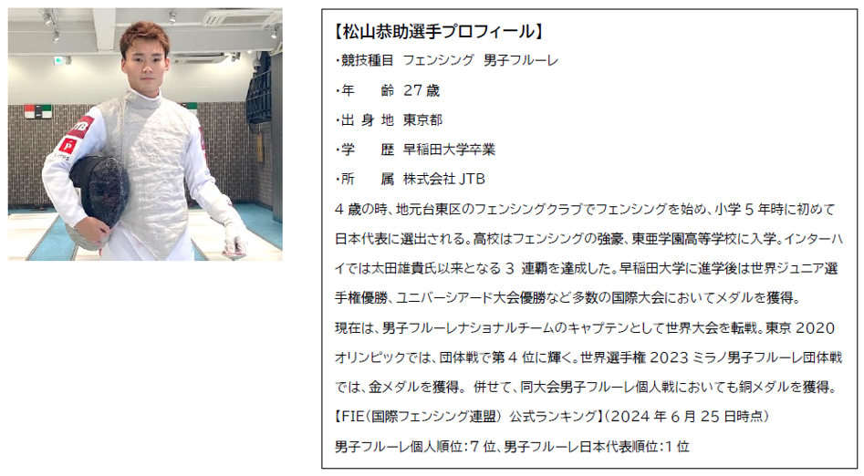 ※JTBは、フェンシング男子フルーレ日本代表の松山恭助選手とスポンサー契約をしています。