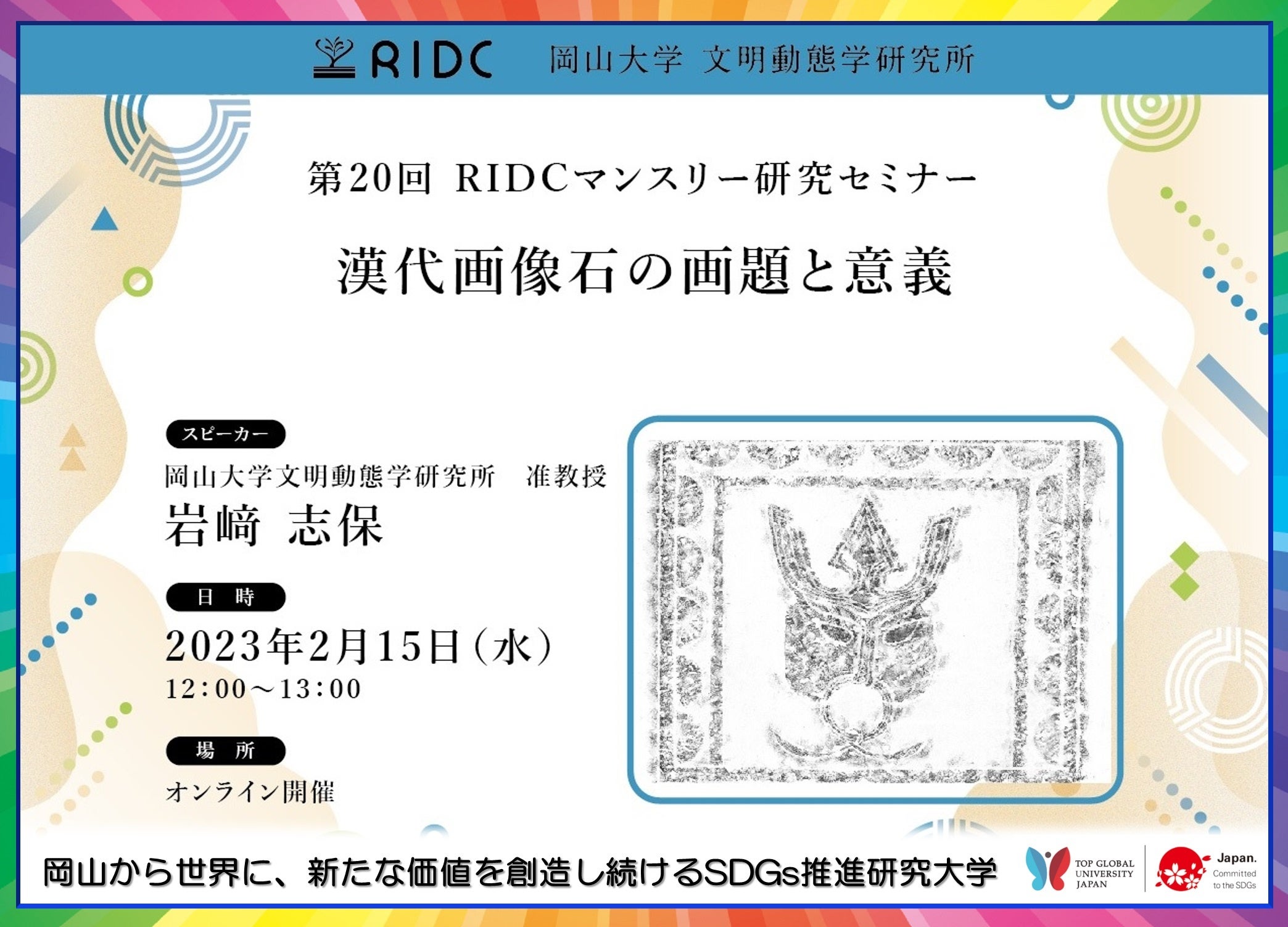 【岡山大学】文明動態学研究所「漢代画像石の画題と意義」〔2/15水, オンライン〕