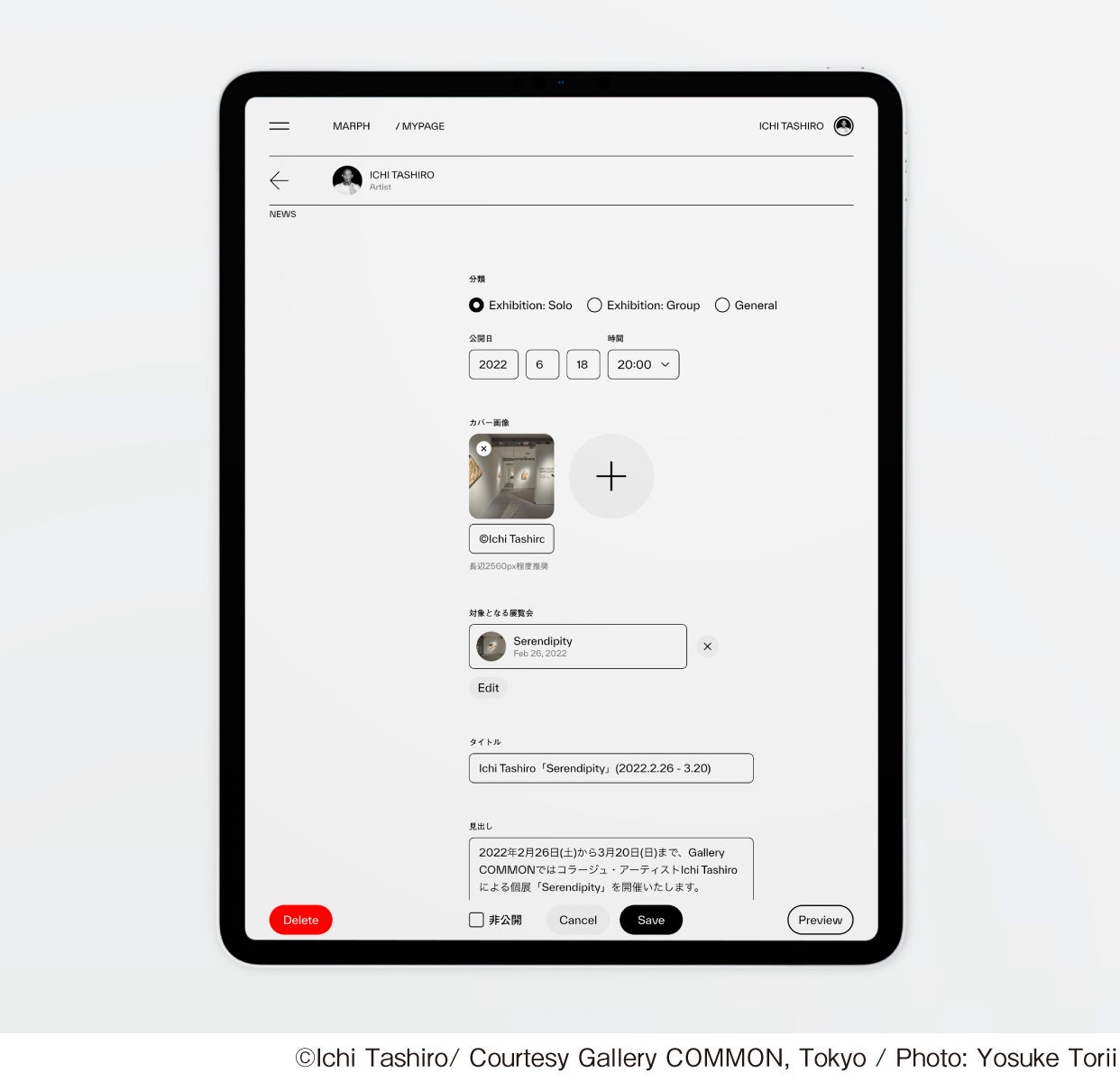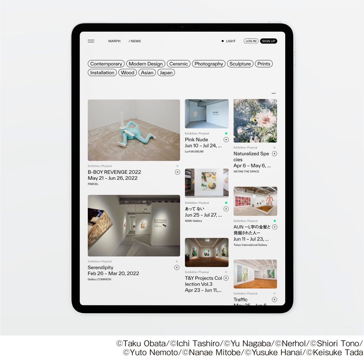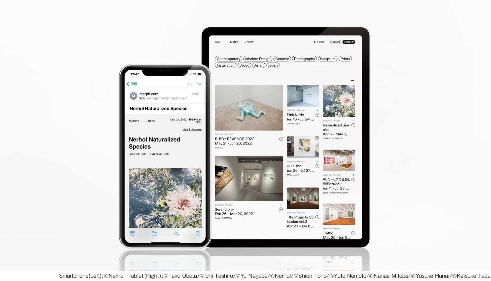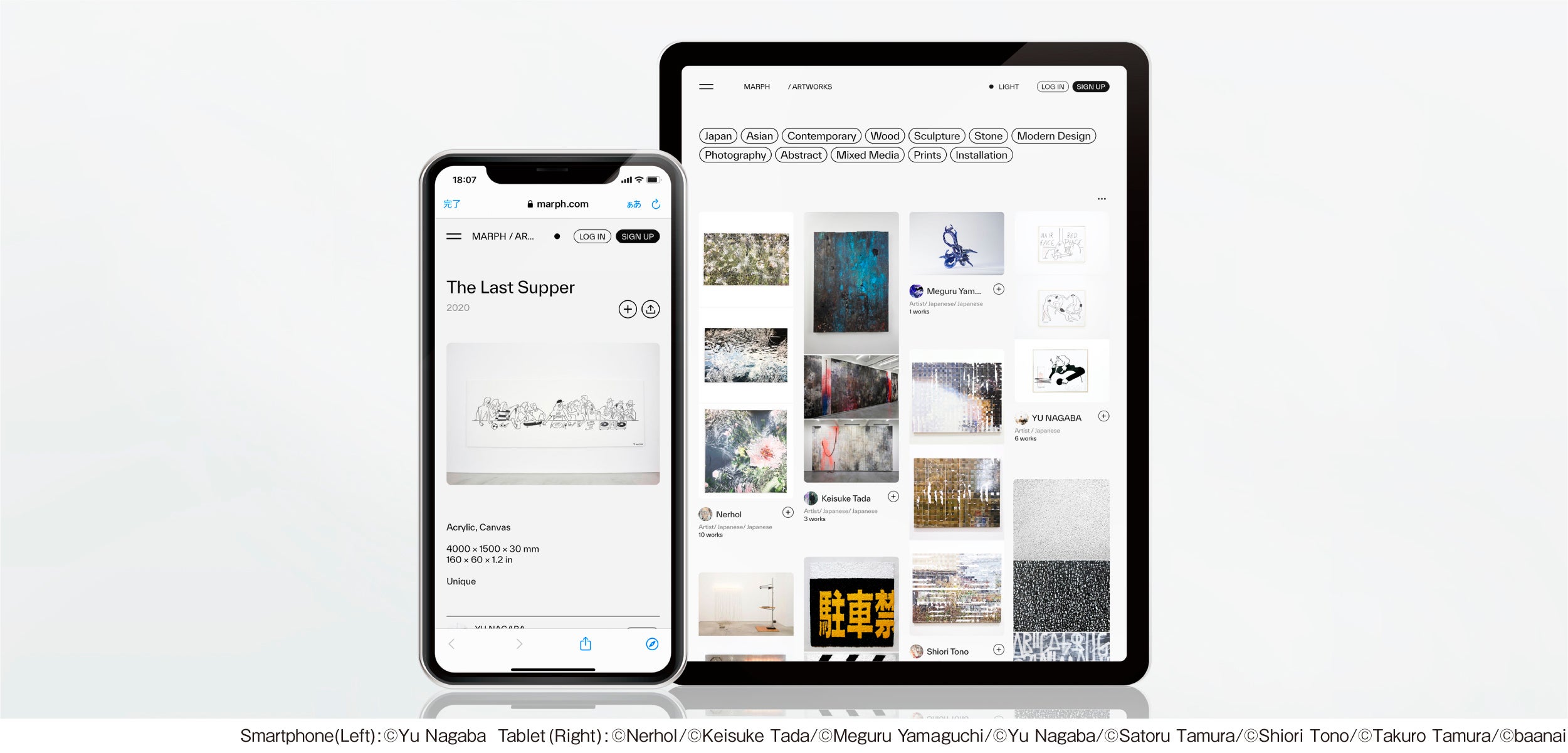 本β版は、「MARPH」のコンセプトに賛同いただいた多様なギャラリー及びアーティストが参加し、使い勝手や追加すべき機能などのフィードバックを頂きながら、皆様と共に運営してまいります。
