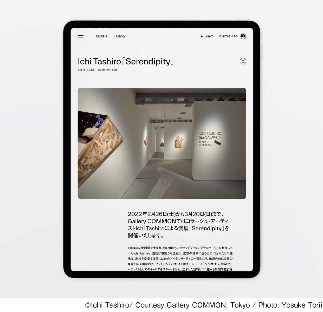 現在、アートに関する様々な情報が横行していますが、上記MARPHのタグラインにある通り、全ての根源はアーティストが生み出すアートそのものにあります。MARPHはアートの一次情報を集積するプラットフォームとして機能し、国内外のあらゆるメディアと連携し、日本のアートシーンを世界へと届けるプラットフォームへと進化します。1人でも多くの人がMARPHを通じて好きなアーティストに出会い、個展に足を運び、ドキドキしながら作家と話をして、生涯を共にする作品と出会ってほしいと願っています。