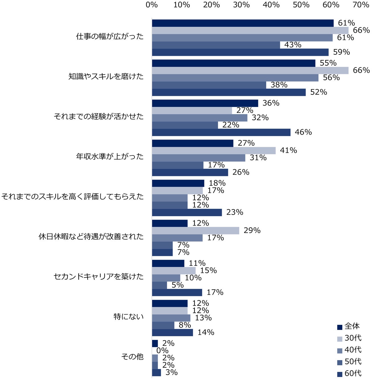 【図8】越境転職をしたことがある方に伺います。越境転職をして良かったことを教えてください。(複数回答可/年代別)