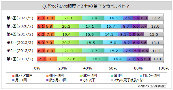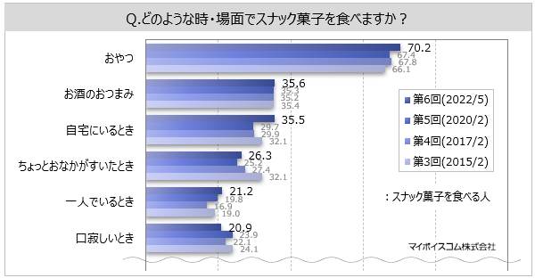 マイボイスコム株式会社(東京都千代田区、代表取締役社長:高井和久)は、6回目となる『スナック菓子』に関するインターネット調査を2022年5月1日~5日に実施し、10,246件の回答を集めました。調査結果をお知らせします。