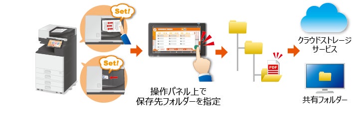 「Quickスキャン」は、スキャンにかかわる手間を軽減し、文書をデジタル化して便利に利活用するための複合機アプリケーションです。クラウドを使ったソリューション、文書管理、タイムスタンプまで、マルチな機能を提供します。