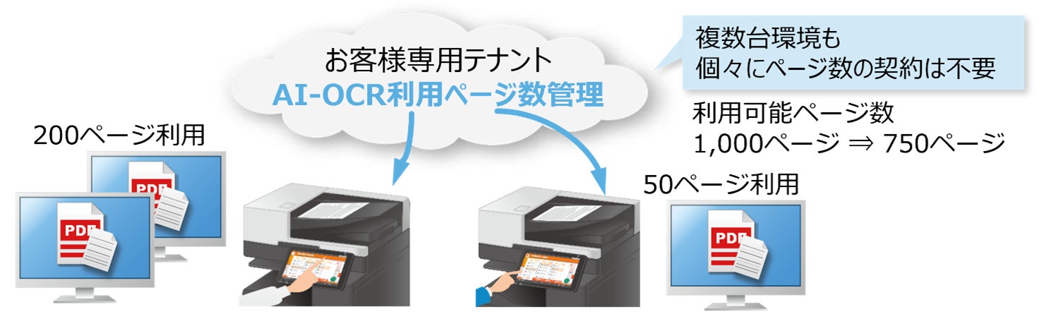 複数台で利用する場合、複合機1台ずつで利用ページ数を設けるのではなく、総利用ページ数による契約が可能です