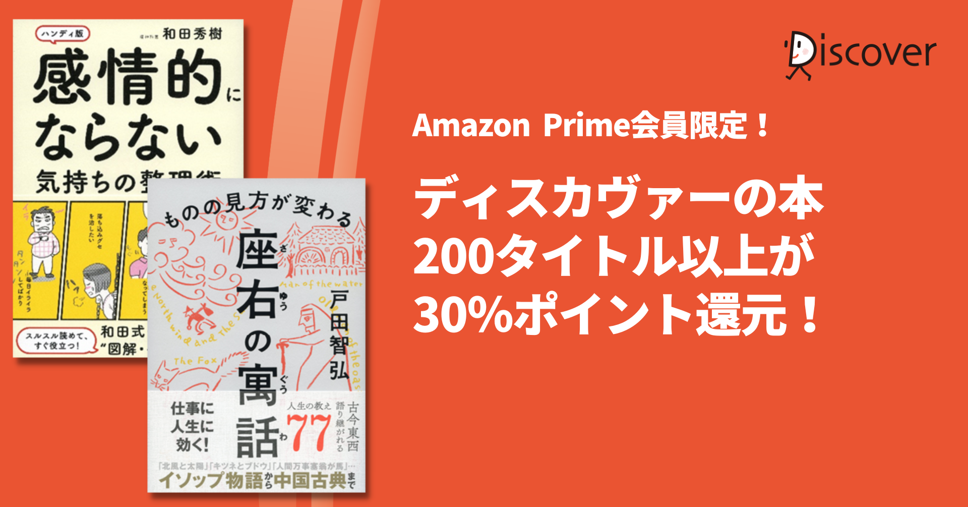Amazon Prime会員限定!ディスカヴァーの書籍206タイトルにつき30%ポイント還元キャンペーン開催