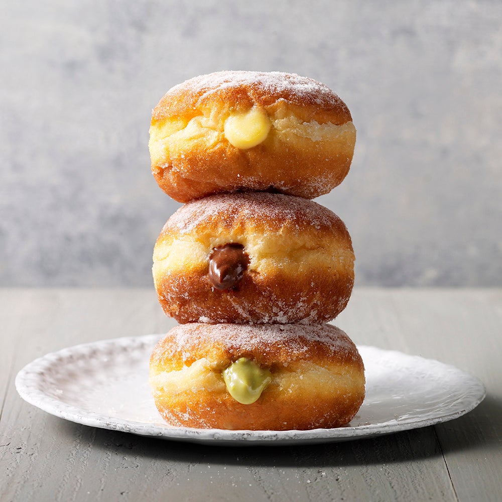 ◇【神奈川】ラ・ポルタ/ボンボローニ(上:カスタード 中央:チョコレート 下:ピスタチオほか、各1個)