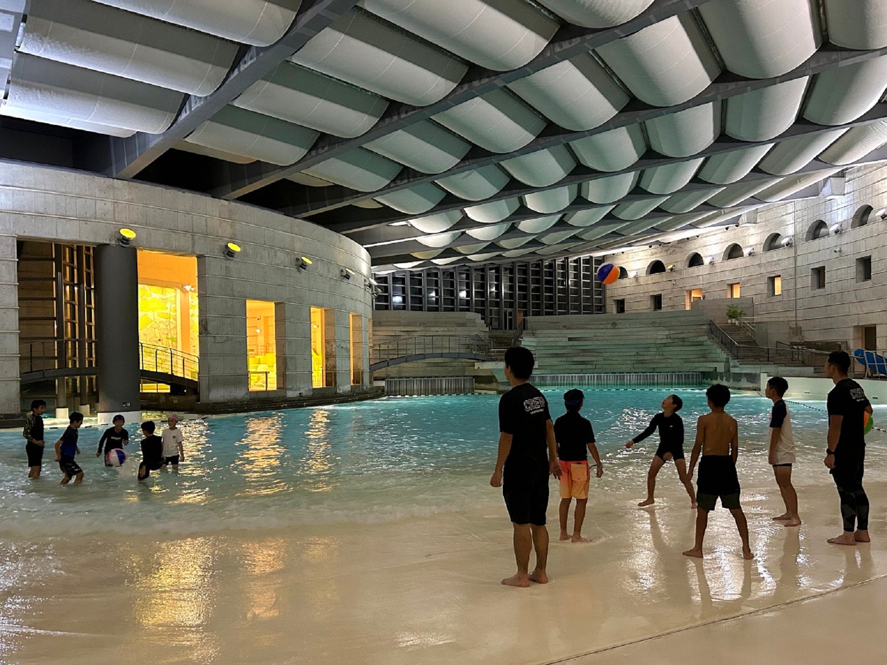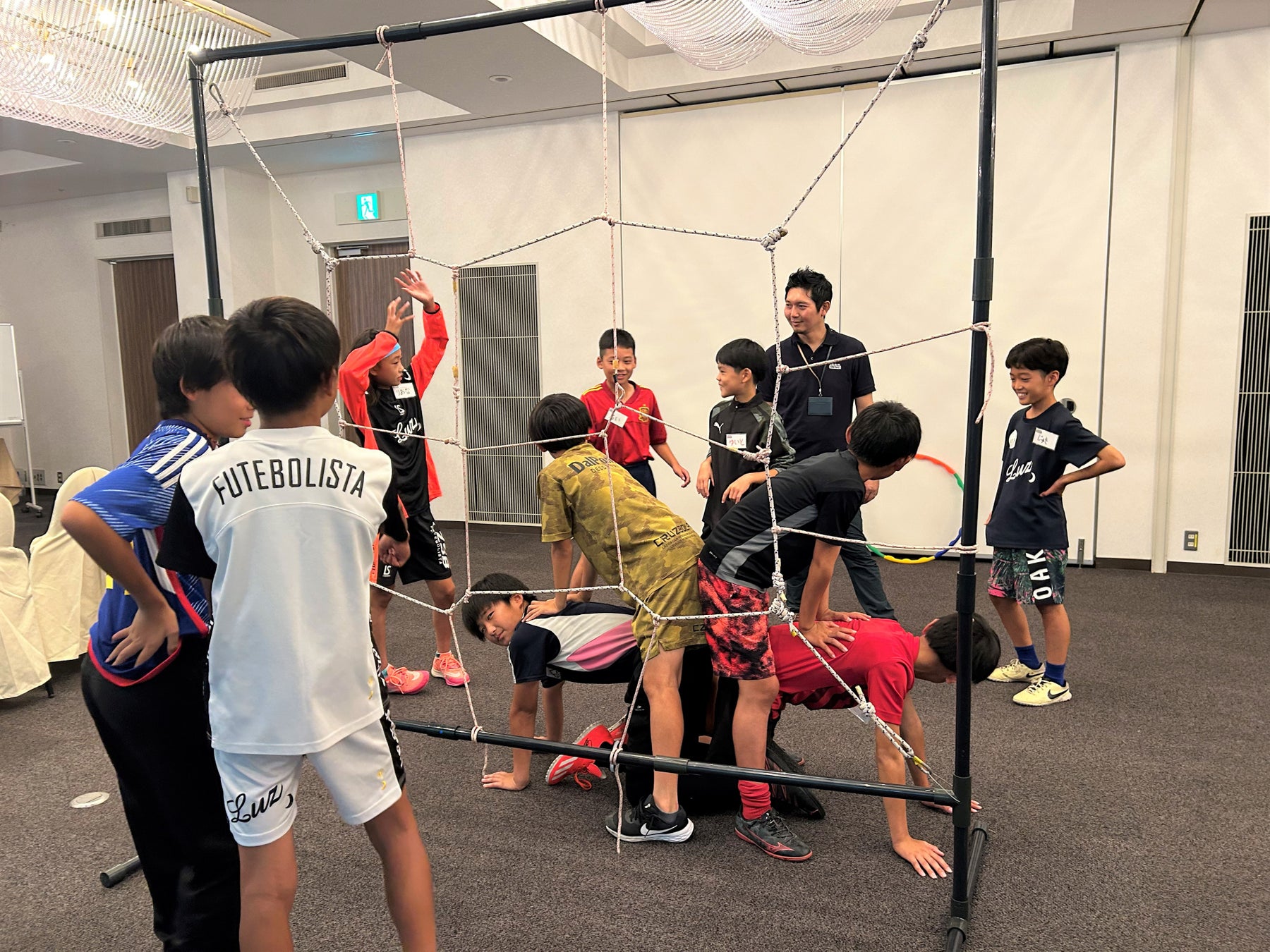 結成式では、異なるチームから集まった10名の結束力を高めるために、次世代リーダー育成を始め人材開発や組織開発を手掛ける株式会社IWNCによるチームビルディングプログラムを開催。チームで協力しないとクリアできない課題に対して、方法を話し合い、一人一人が自分の役割を果たすことでクリアする経験を通して、全員が主体的に協力してチームワークを発揮することの大切さを学びました。1泊2日の結成式では、練習やプログラム以外にも、食事やプールで時間をともに過ごし、親睦を深めました。