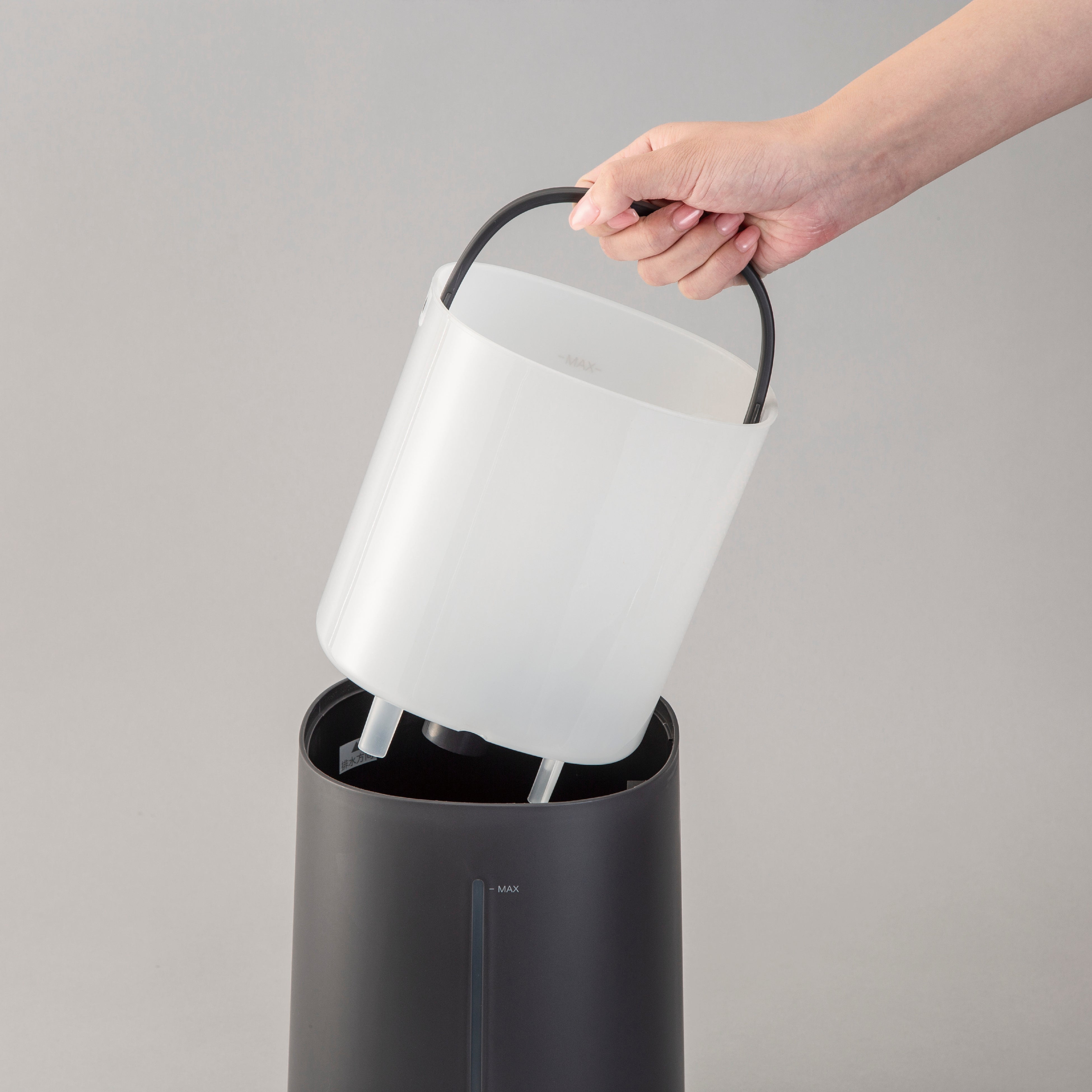 ふたをあけずにそのまま上から給水できるので、毎日の給水が簡単。さらに今年のモデルは、タンクを外せるようになりました。ハンドル付きタンクなので移動もラクラクでシンクや洗面台で直接給水することも可能です。