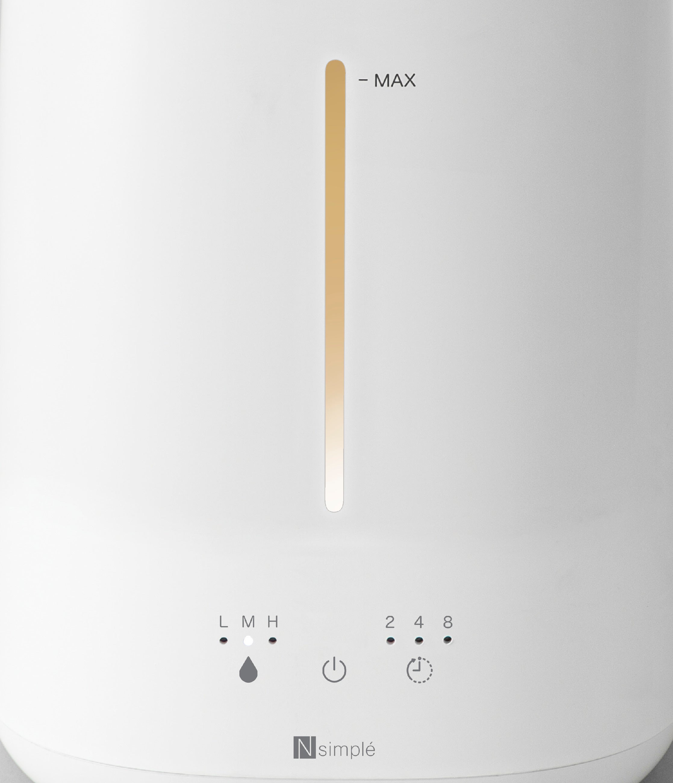 その他にも、加湿量は3段階(HIGH/MIDDLE/LOW)で調節可能、最長8時間の切タイマー(2・4・8時間)も搭載し、日々便利にお使いいただけます。
