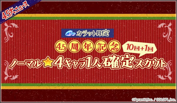 ●4.5周年記念 カラット限定ノーマル★4確定10回+1回スカウト