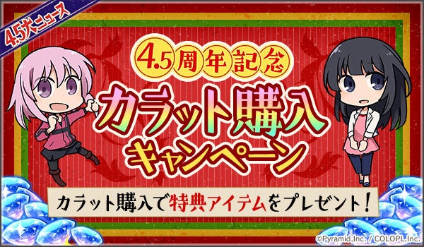 日頃プレイしていただいている皆様への感謝の気持ちを込めて、4.5周年記念の様々なアップデート情報を、「4.5大ニュース」として公開しております。