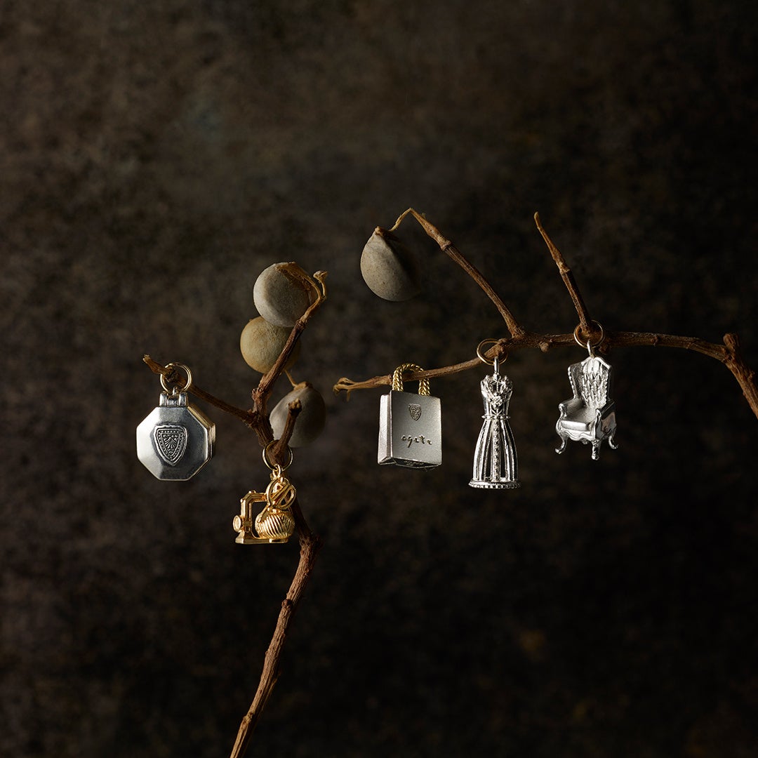 全国に先駆けて、アガット京都三条で先行発売されるチャームは、どこか異国情緒を感じるアンティークモチーフや、ブランドのロゴが刻印されたショッパーなど、思わず集めたくなるようなコレクション性の高いラインナップ。そしてジュエリーボックスのチャームは蓋を開けることができ、中にはダイヤモンドが光るリングが収められているという、大人の遊び心も忘れない仕掛けも、思わず手に取りたくなるポイント!
