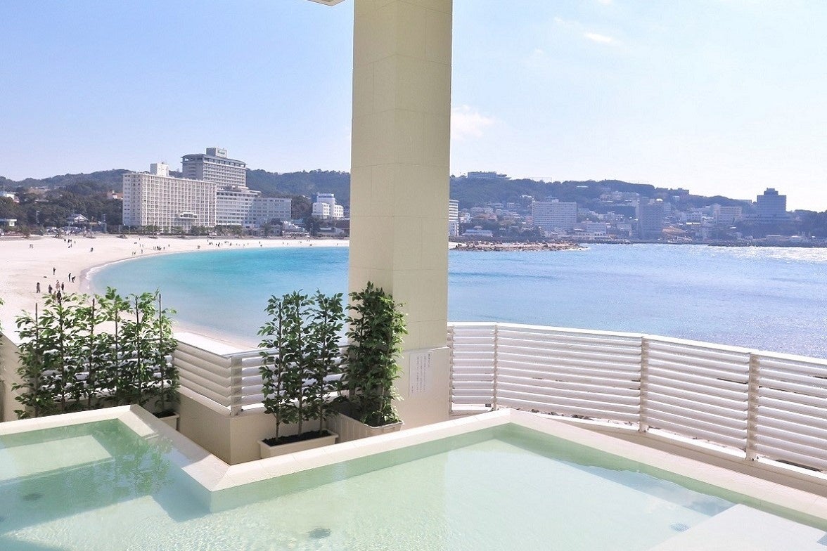 眺望の湯「潮風」からは、目の前に広がる白良浜を一望できます。